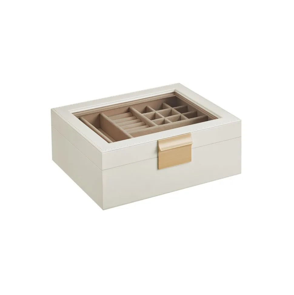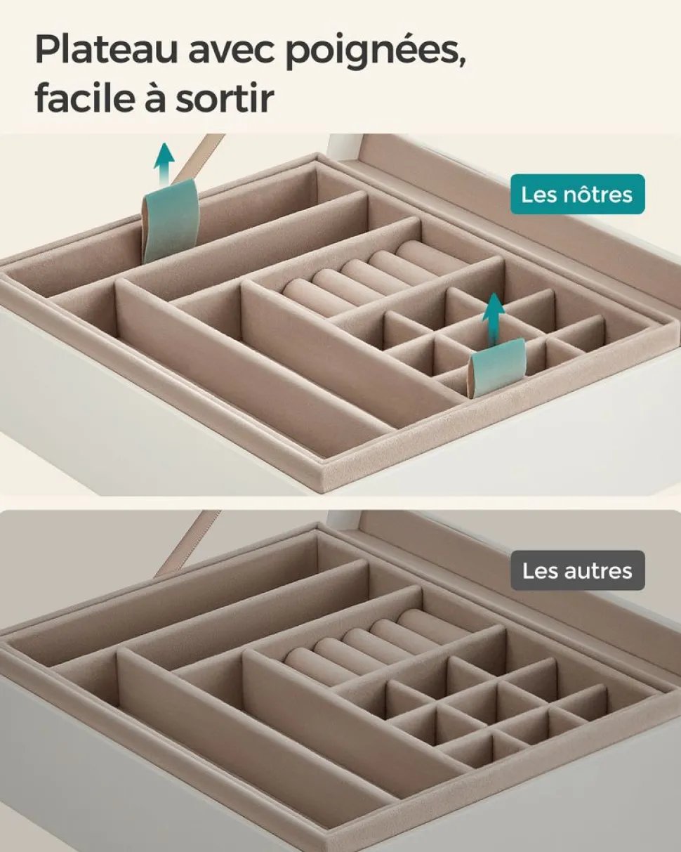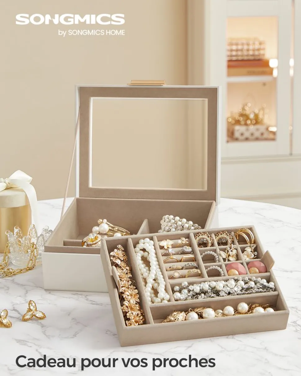 Fashion SONGMICS Boîte à bijoux 2 niveaux moderne blanc nuage