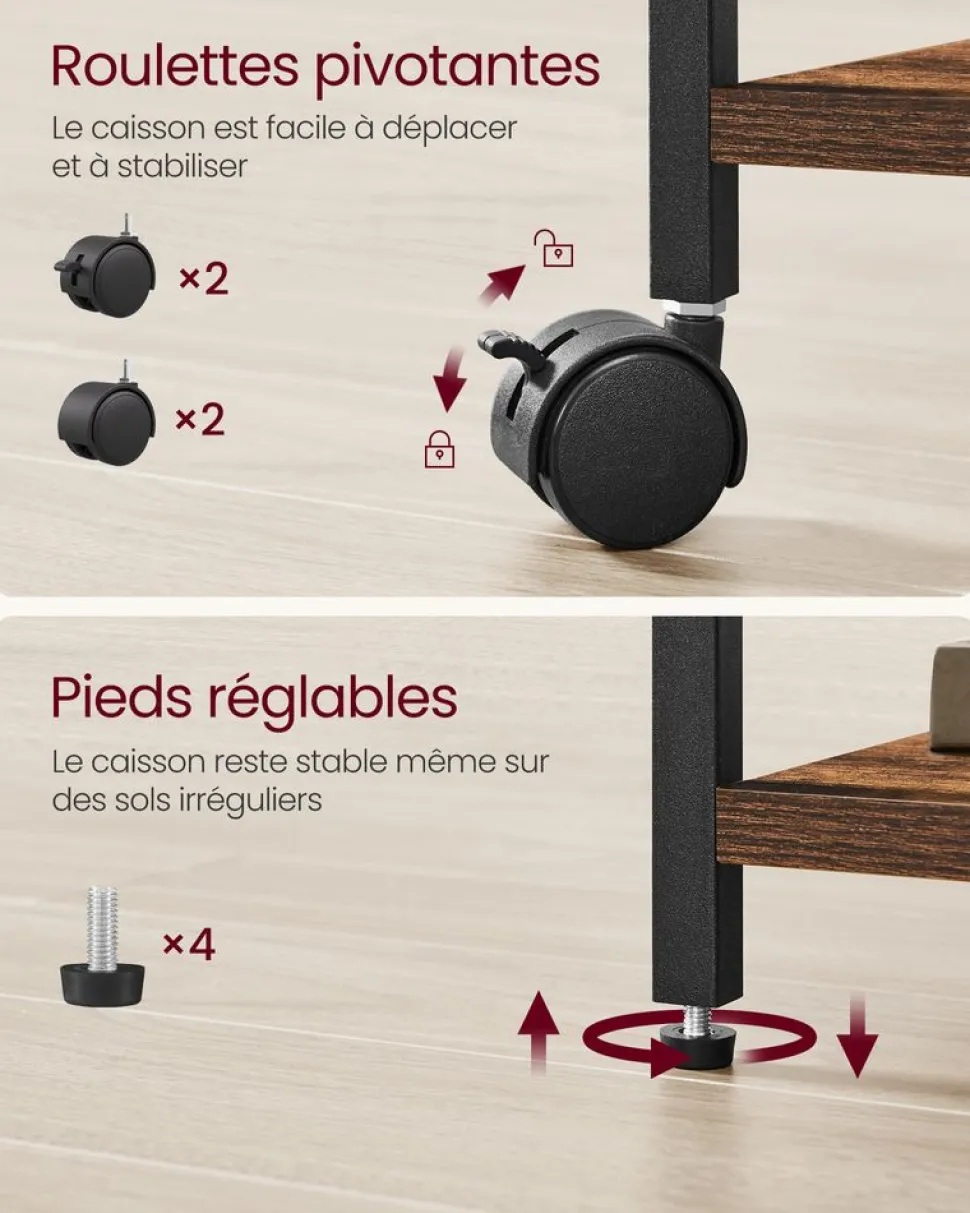 SKU: SKUOFC055W14 Categories: Bibliothèques & Caisson, Caissons De Bureau, Meuble De Bureau Tags: Blanc Nuage, Marron Rustique + Noir, SONGMICS Brand: SONGMICS