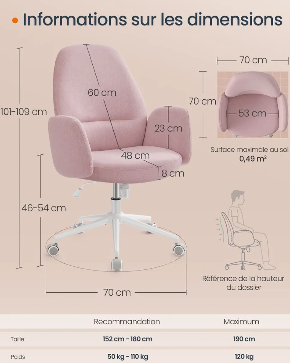 SKU: SKUOBG037B01 Categories: Chaises De Bureau, Fauteuils De Bureau, Meuble De Bureau Tag: SONGMICS Brand: SONGMICS