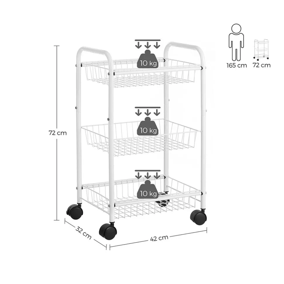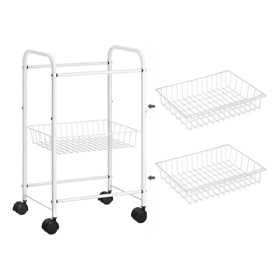 Les détails comptent : Les 3 paniers sont dotés de rebords pour ne pas que vos objets tombent et des poignées incurvées vous aident à déplacer le chariot. Une utilisation en toute simplicité !