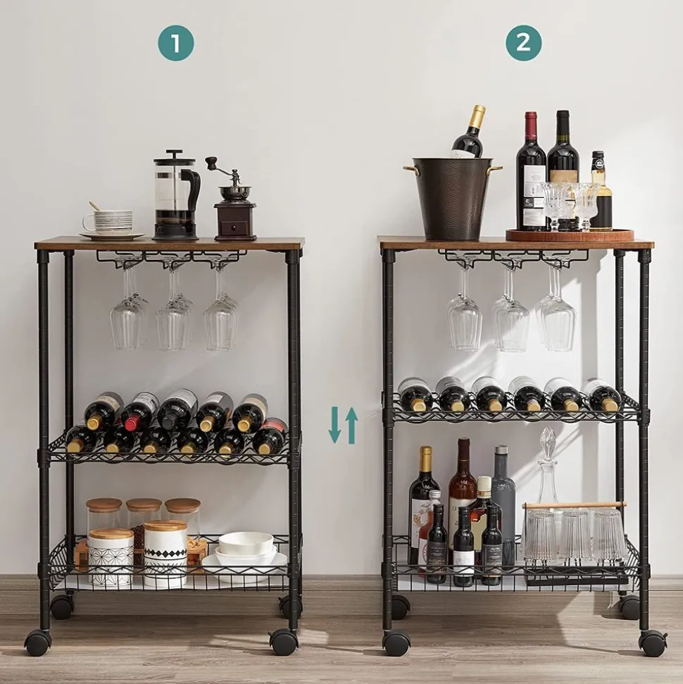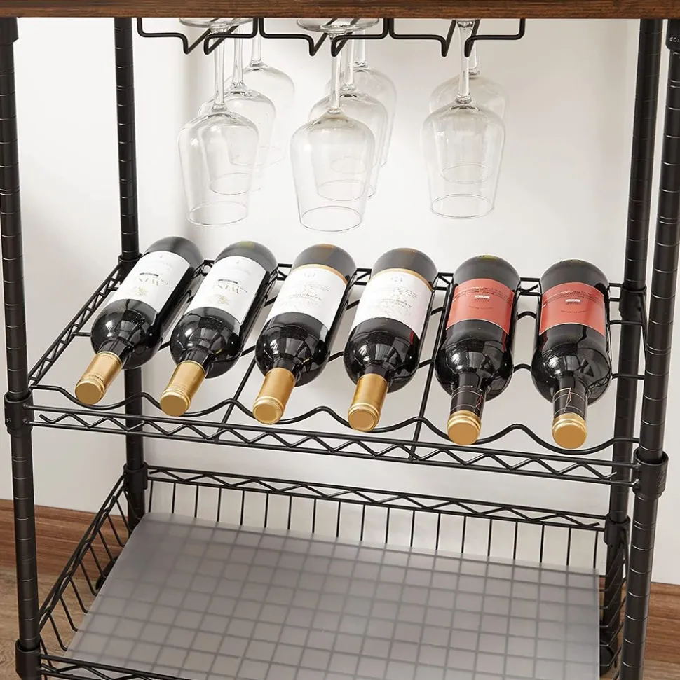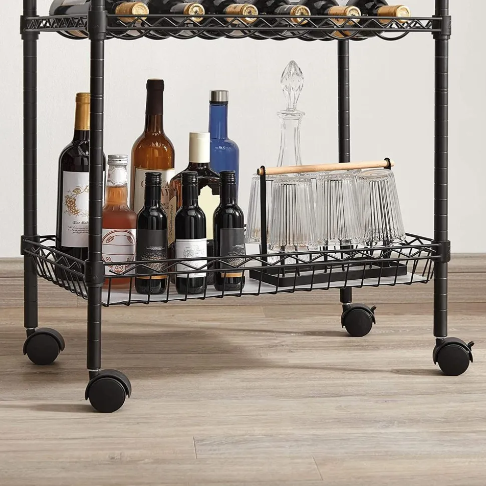 Que vos fêtes roulent… grâce à la commodité de ce chariot de bar ! Avec un large dessus, des porte-verres, des porte-bouteilles et un panier de rangement, il vous aidera à organiser des fêtes impressionnantes !