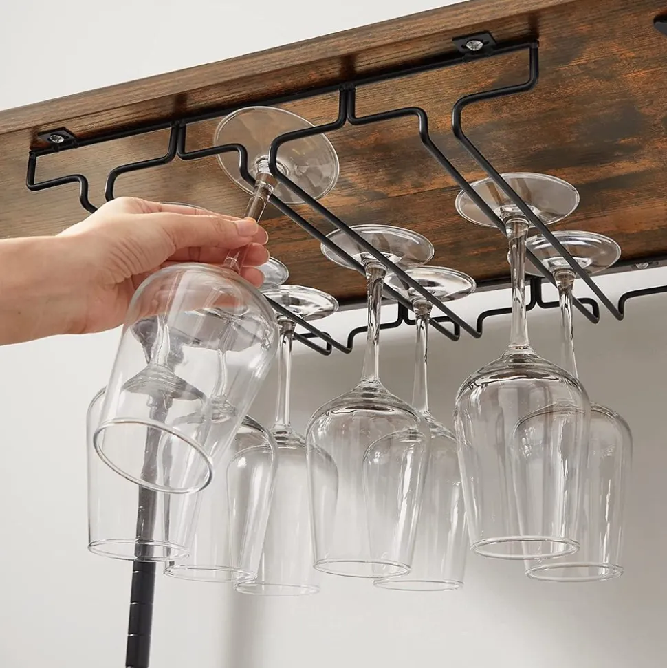 Soyez prêt à faire la fête : Ce chariot de service sera la station d’énergie de votre fête. Son large dessus offre de la place pour des apéros et des verres peuvent être suspendus dans les porte-verres. Mettez vos bouteilles sur l’étagère du milieu. Le panier en bas sera utile pour ranger encore plein d’autres choses !