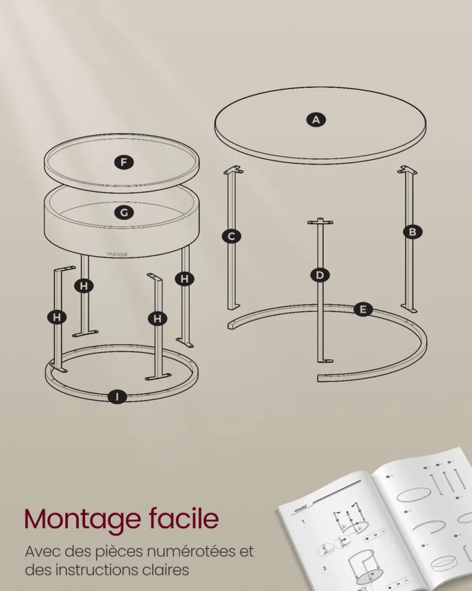 【MONTAGE ET NETTOYAGE FACILES】Grâce à leur notice claire et à leurs pièces étiquetées, ces tables de salon se montent très facilement. Leur nettoyage est tout aussi aisé : un chiffon humide suffit pour les garder impeccables