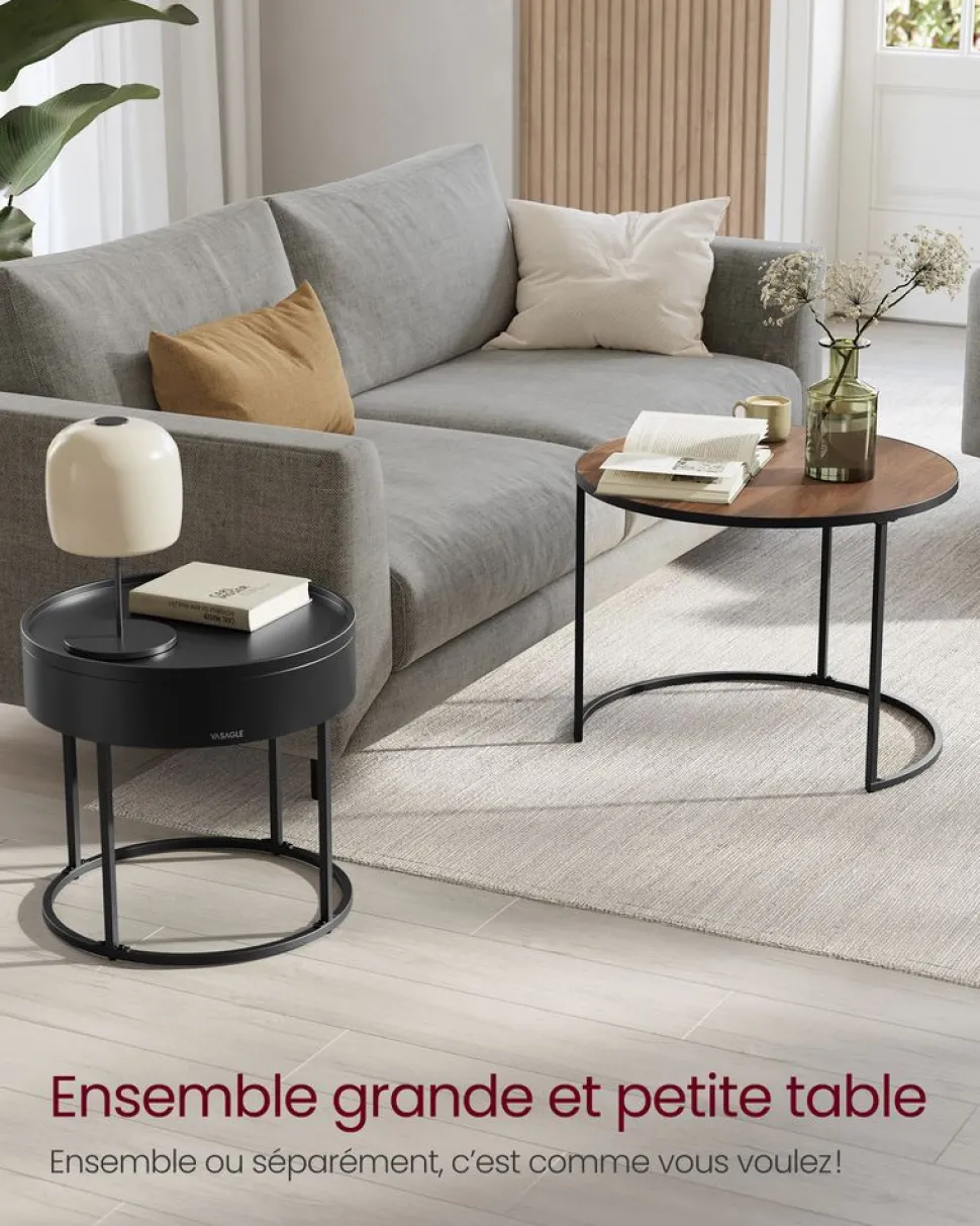 【GRAND ESPACE DE RANGEMENT】Chaque table d’appoint est dotée d’un compartiment idéal pour ranger des objets divers. Lorsqu’elles sont combinées, elles peuvent former une grande table, offrant un accès pratique à vos télécommandes et autres objets utilisés