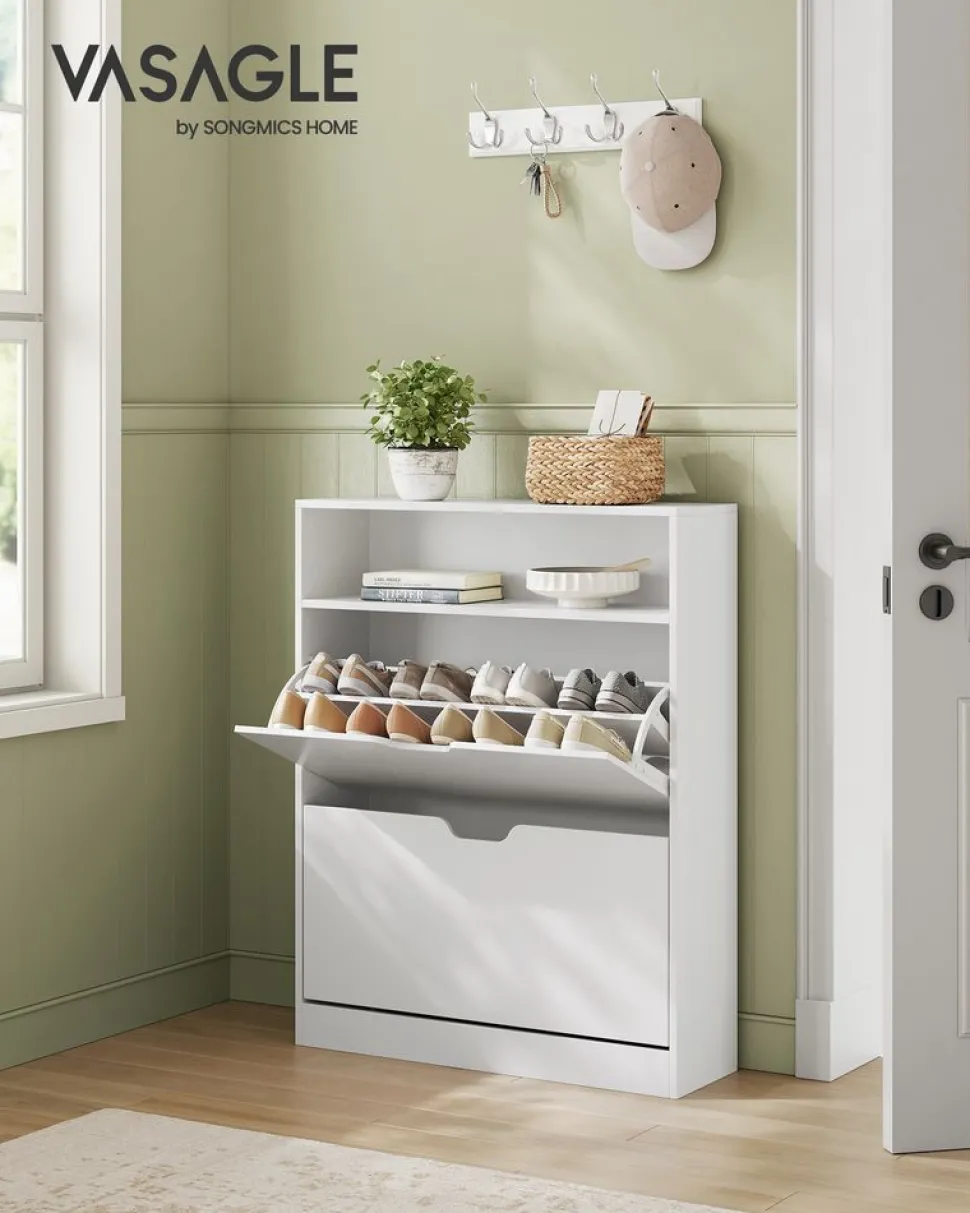 [Spacieux et polyvalent] Ce meuble à chaussures peut contenir de 11 à 16 paires de chaussures ! De plus, avec ses espaces de rangement ouverts, vous pouvez mettre en scène vos plantes, photos ou souvenirs dans une organisation vraiment unique[Adaptable et peu encombrant] Avec des séparateurs amovibles et 3 niveaux réglables par séparateur, cette armoire à chaussures s’adapte à de nombreux types de chaussures. Ajustez-la, basculez-la et optimisez votre espace selon vos préférences[Confiance dans la sa durée de vie] Fabriqué à partir de panneaux de haute qualité résistants aux fissures et équipé d’un panneau arrière pour protéger vos chaussures de la poussière et des insectes, ce rangement fin est un havre de sécurité[Élégante et sophistiquée] Cette étagère à chaussures pour couloir, avec son design épuré et son esthétique minimaliste, est plus que fonctionnelle. C’est un meuble qui affirme votre style et rehausse la décoration de votre maison[Montage facile] Avec nos instructions illustrées étape par étape, nous avons rendu l’assemblage de cette étagère très facile. En seulement 30 minutes, vous aurez un nouveau meuble élégant et fonctionnel dans votre pièce