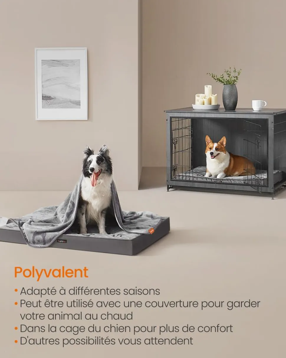 【POLYVALENT】Ce matelas pour chiens peut être utilisé seul, dans une cage, dans un sac de transport ou sur un lit surélevé pour chiens. Parfait pour éviter le contact avec les sols froids, les enfants adoreront également s’y blottir contre leurs amis canins