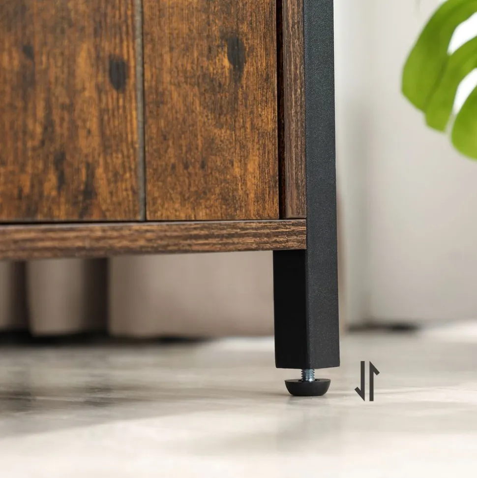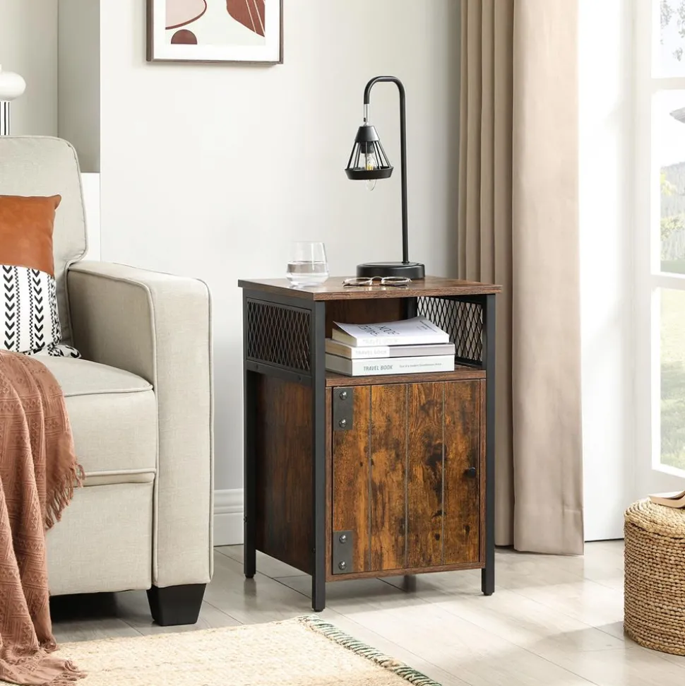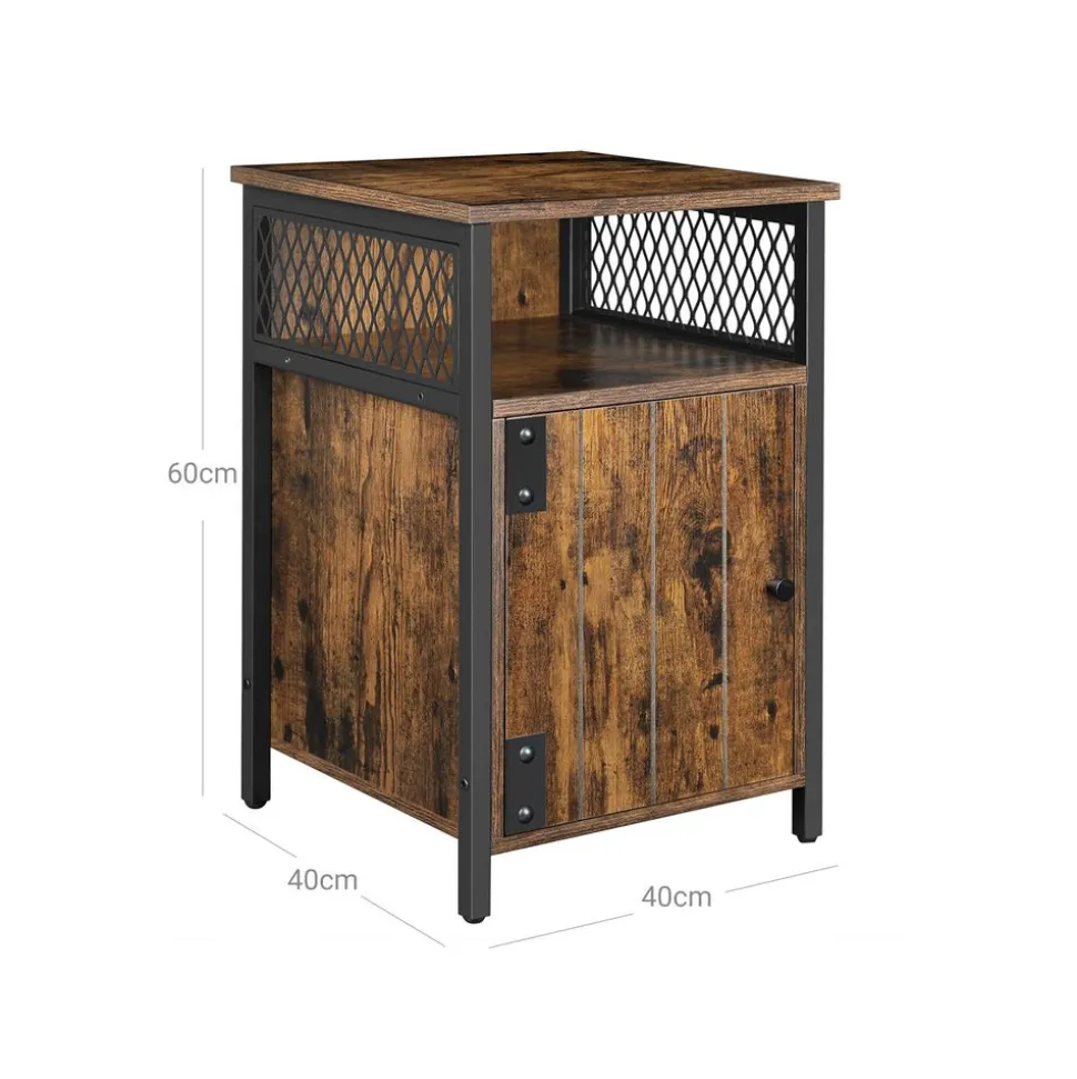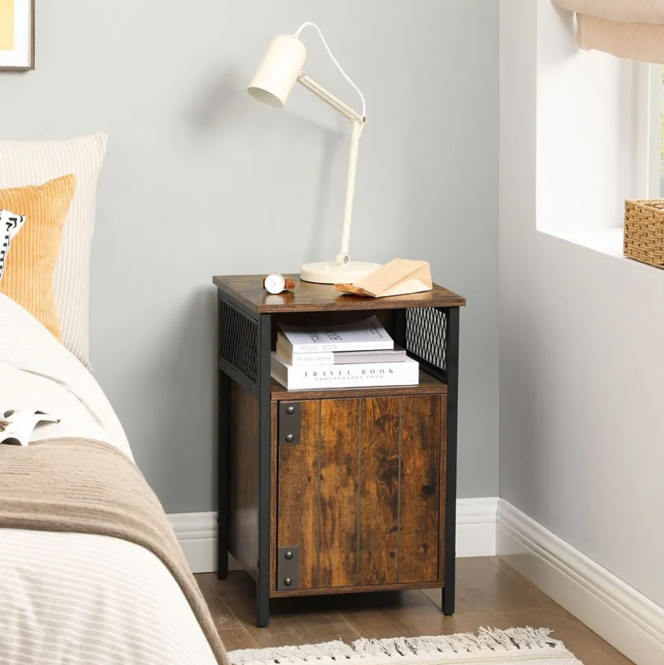 DU STYLE POUR DE L’AMBIANCE : Lorsque vous décorez une pièce, n’oubliez pas les coins ! Cette table de chevet marron rustique et noir apporte une ambiance de style industriel à votre chambre