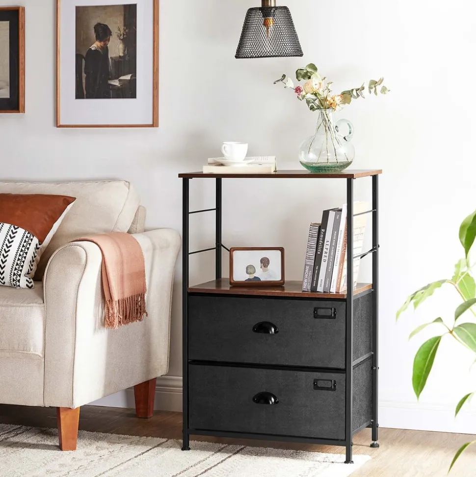 Une dose de charme rustique : Des étagères marron rustique, un cadre en métal noir, un devant en tissu suédine doux et des poignées découpées en métal… Tous ces détails s’assemblent pour apporter un charme rustique à votre intérieur