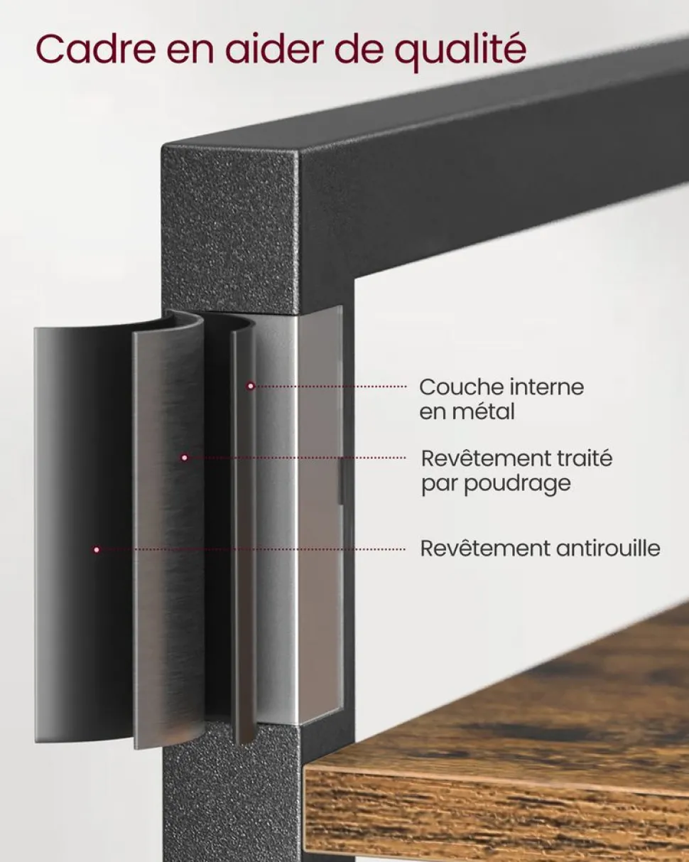 Stable et durable – Un socle renforcé assure une bonne stabilité. L’armature, fabriquée en panneaux de fibres de qualité supérieure, est durable.