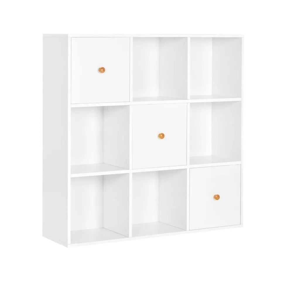 Quelles sont ses capacités ? Cette étagère a 9 cases est faite pour les livres, les souvenirs, les figurines et les jouets. Certains aiment se montrer et d’autres préfèrent se cacher ? Les 6 cubes ouverts et les 3 cubes fermés avec portes vont tous les satisfaire