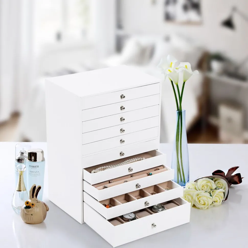 Coffret à bijoux extra grand – 10 tiroirs larges et extractibles conservent tous vos bijoux en un seul endroit. Correspond à une boîte à montres plus deux boîtes à bijoux