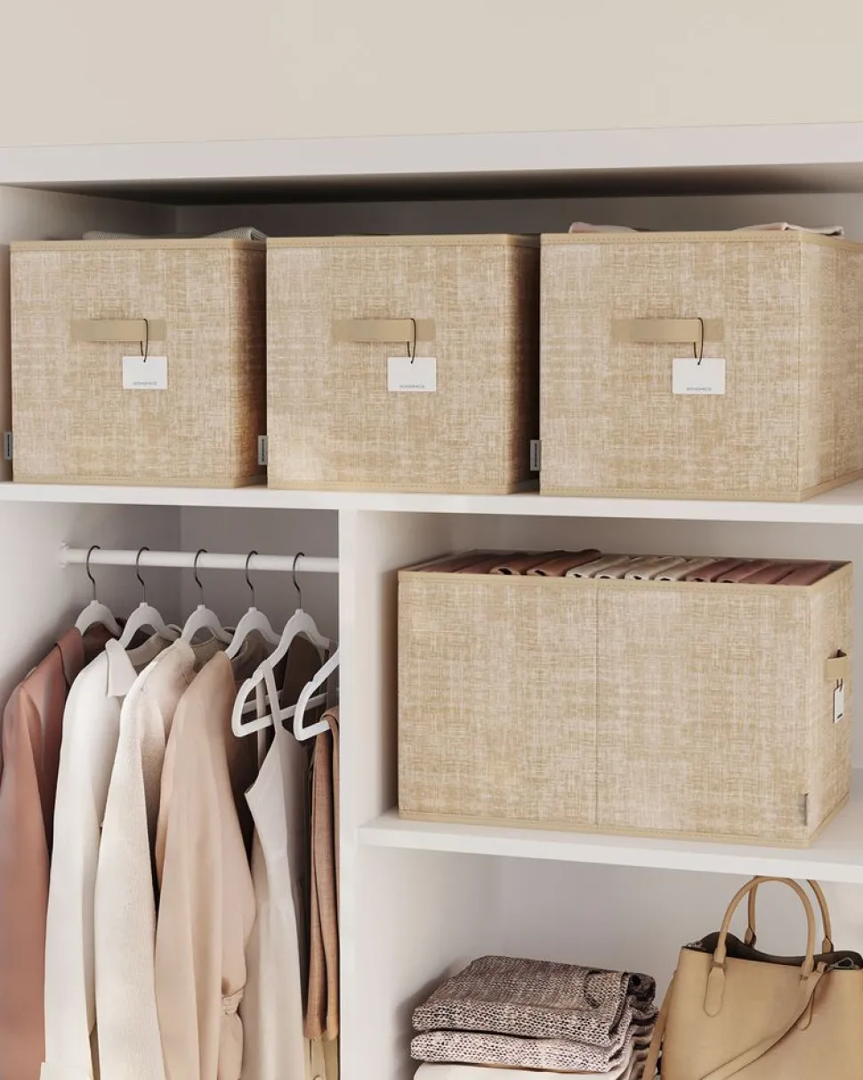 【PRATIQUE ET TRANSPORTABLE】Ces paniers de rangement sont dotés de porte-étiquettes pour classer leur contenu par catégorie et localiser rapidement vos affaires. De plus, les doubles poignées permettent de les tirer et de les transporter facilement