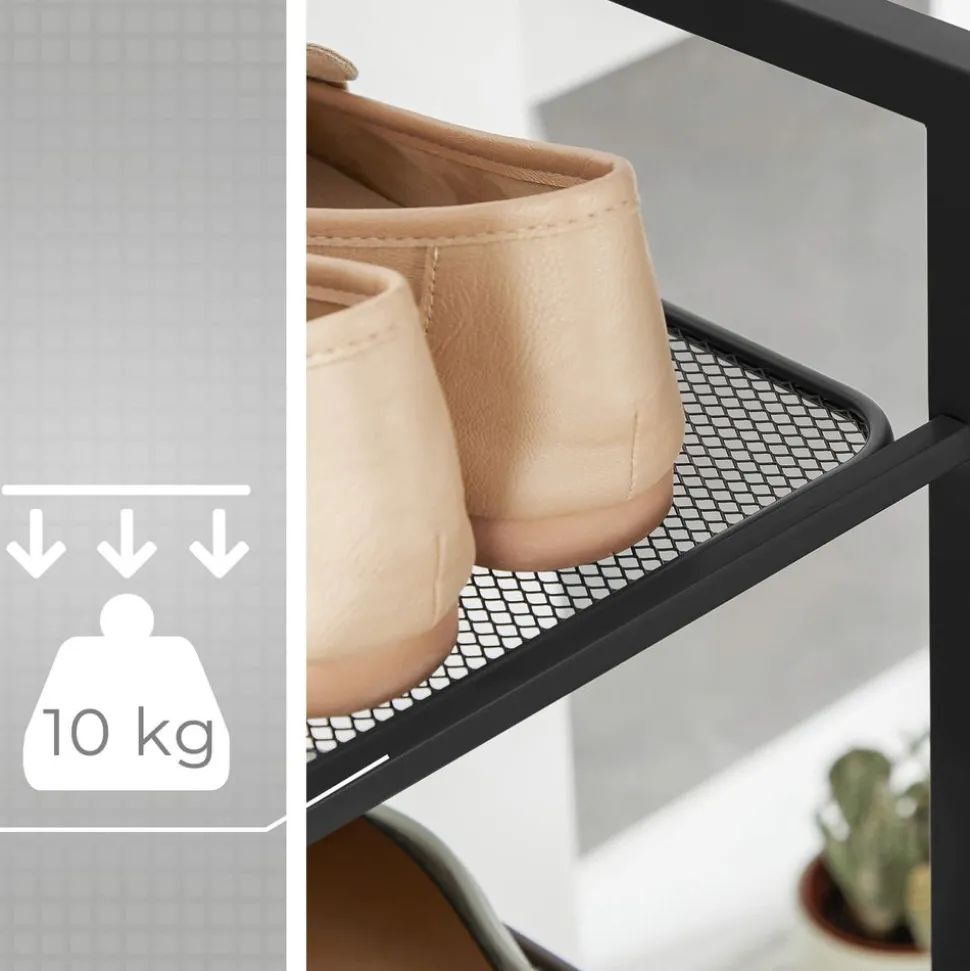Elle va vous accompagner pendant longtemps : Contrairement aux meubles à chaussures fragiles qui perdent en rigidité au fil du temps, cette étagère à chaussures dotée de niveaux en treillis en métal robuste et durable accueilleront vos bottes, vos baskets et vos talons hauts pour des années à venir.