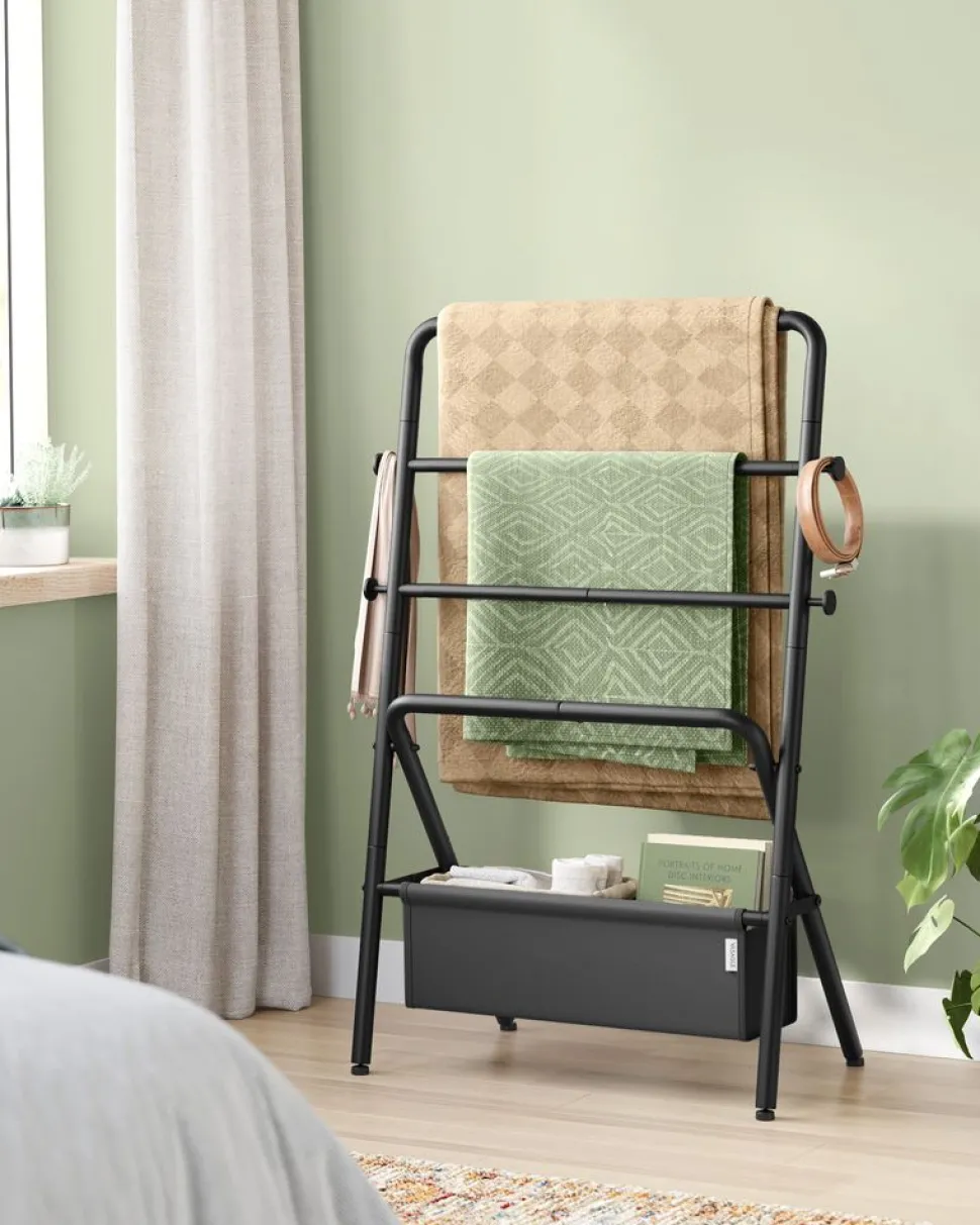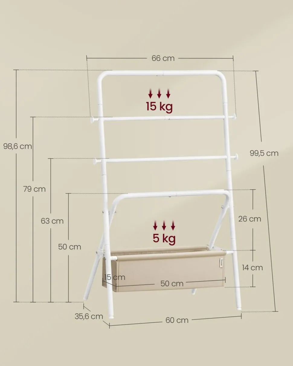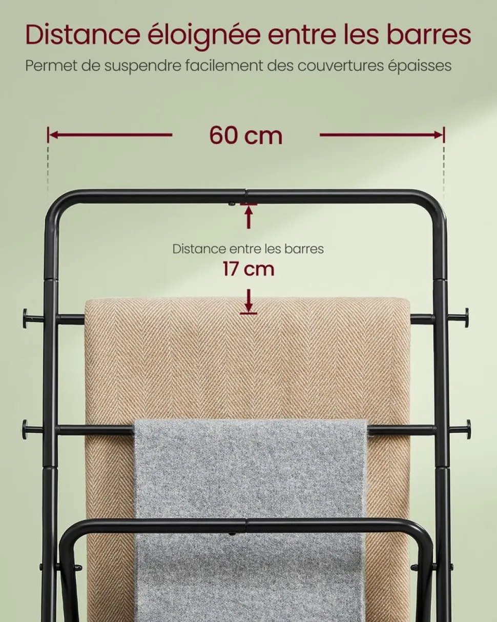 Entre de bonnes mains : Vos vêtements tombent souvent ? Optez pour ce portant ! Avec des barres en acier de 25 mm de diamètre et de 0,25 mm d’épaisseur, un tissu non-tissé de 110 g/m²et une charge de 55 kg, ce portant est stable pour vos habits