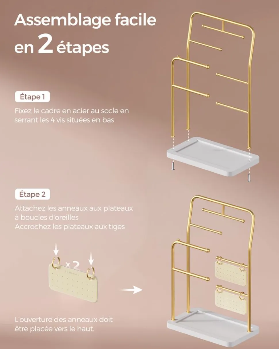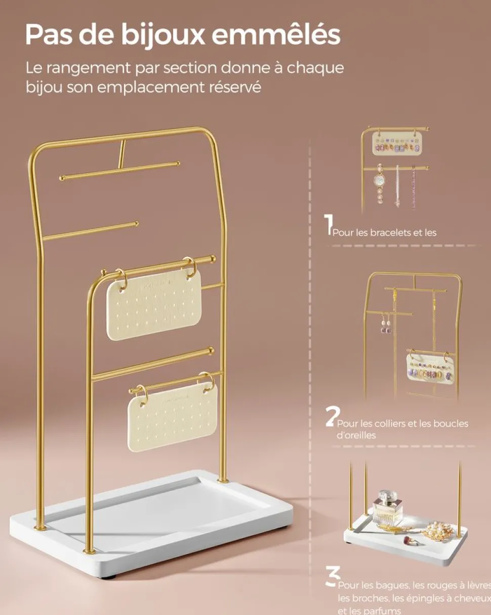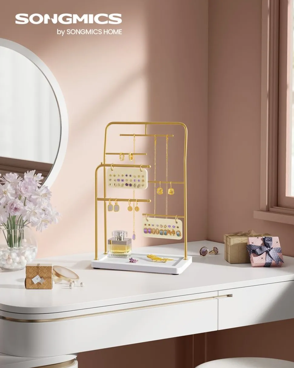 Flash Sale SONGMICS Porte-bijoux doré et blanc