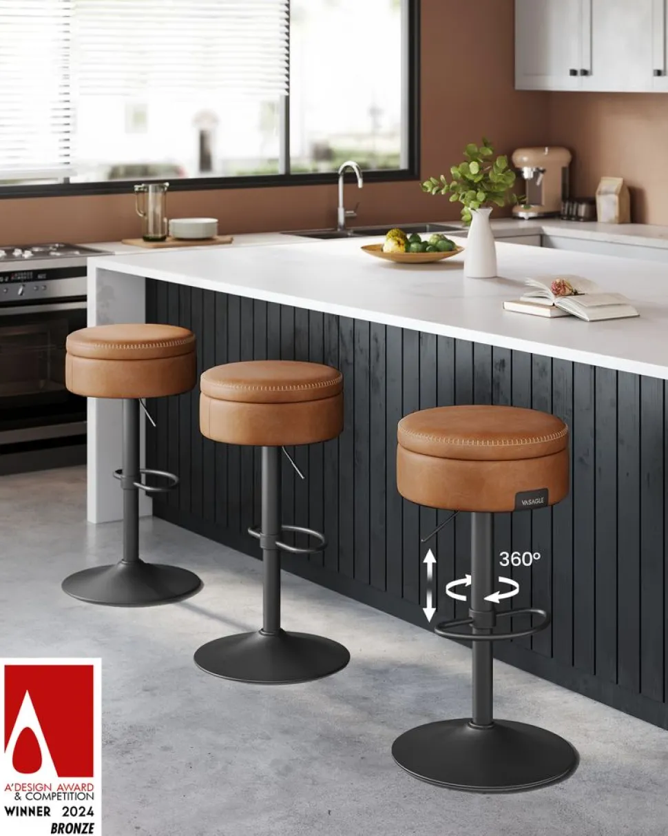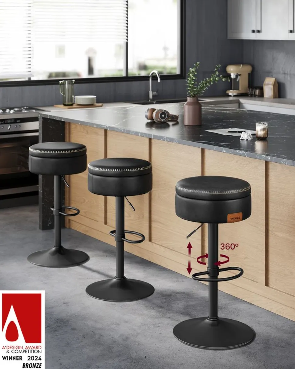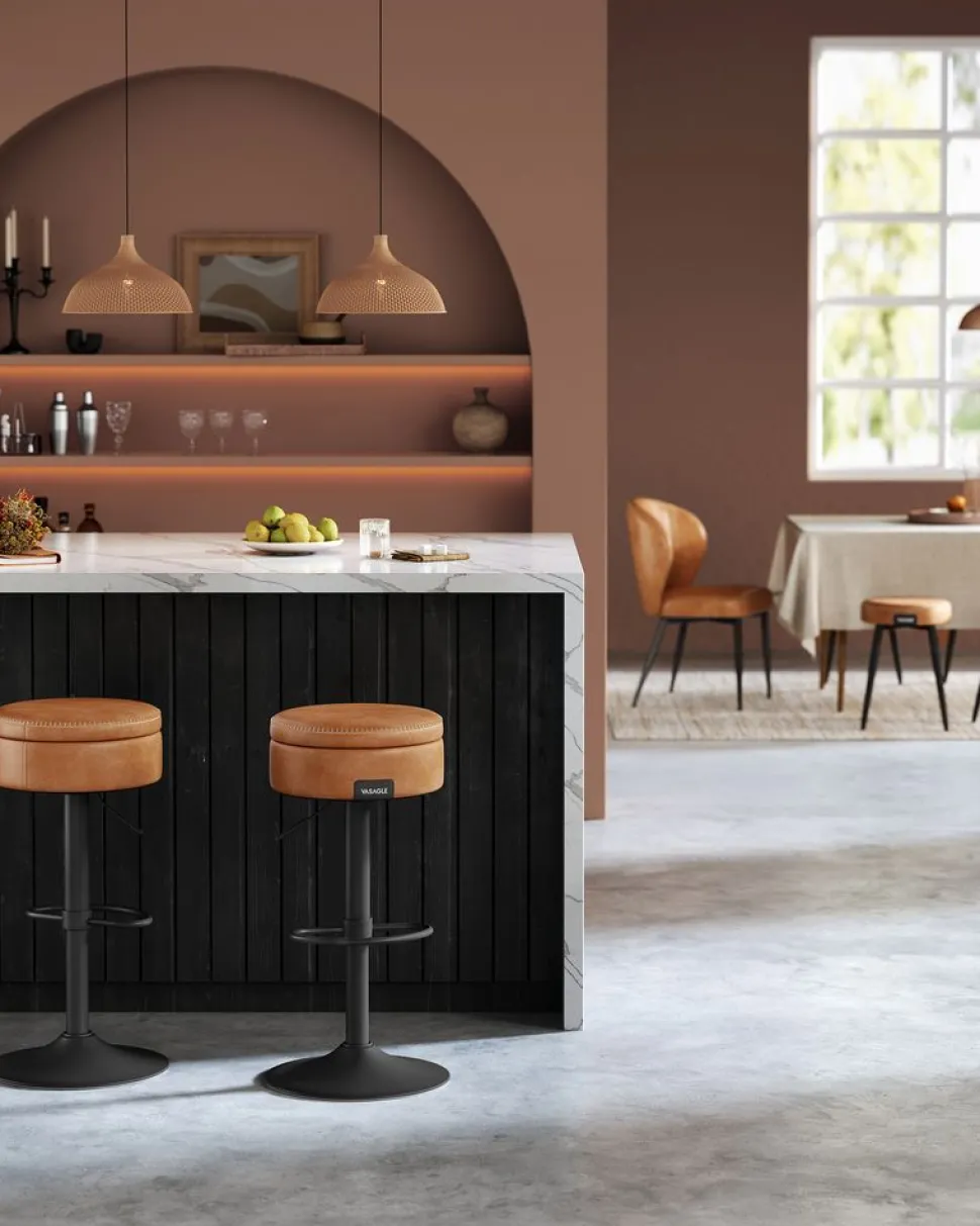 [Se détendre confortablement] Laissez-vous séduire par le confort douillet de nos tabourets de bar, dotés d’une assise ergonomique qui épouse les contours de votre dos et de votre fessier, et agrémentés d’une mousse confortable pour une détente inégalée[Repose-pieds durable avec protection métallique] Chacun de ces tabourets de petit-déjeuner est équipé d’un repose-pieds avec protection métallique, conçu pour durer et se nettoyer facilement, même si l’on appuie dessus avec des chaussures[Design élégant et raffiné] Rehaussez l’esthétique de votre intérieur avec cet ensemble de 2 tabourets de bar, doté d’un siège au design raffiné et de pieds fuselés. Ils apportent une touche chic et moderne à tous les espaces qu’ils décorent[Stabilité améliorée] Fini les sièges instables ! Grâce à la structure en acier robuste et aux pieds réglables articulés, nos tabourets ont une bonne stabilité même sur des sols légèrement irréguliers, tout en préservant votre sol des rayures[Montage simple et sans effort] Ces tabourets rembourrés sont conçus dans un esprit de simplicité et sont accompagnés d’instructions claires et faciles à suivre qui font du montage un jeu d’enfant, vous économisez ainsi du temps et de l’énergie