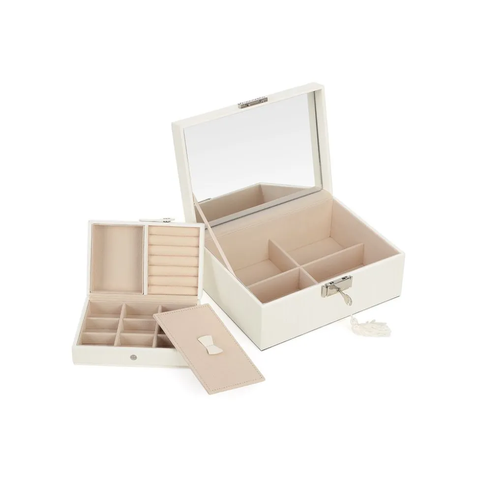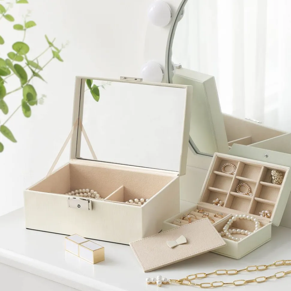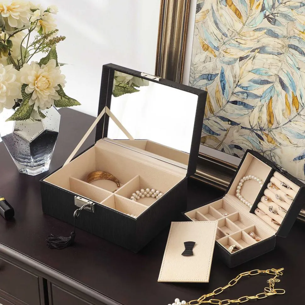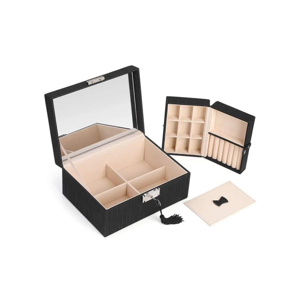 FAITES-EN UNE BOITE DE VOYAGE : Le plateau démontable se divise en différents compartiments pour accueillir vos bagues, vos clous d’oreilles et vos colliers. Enlevez la partie supérieure et faites-en une mini boîte de voyage à enmener partout !