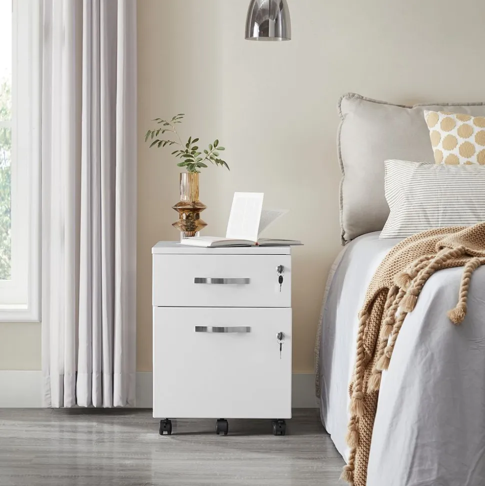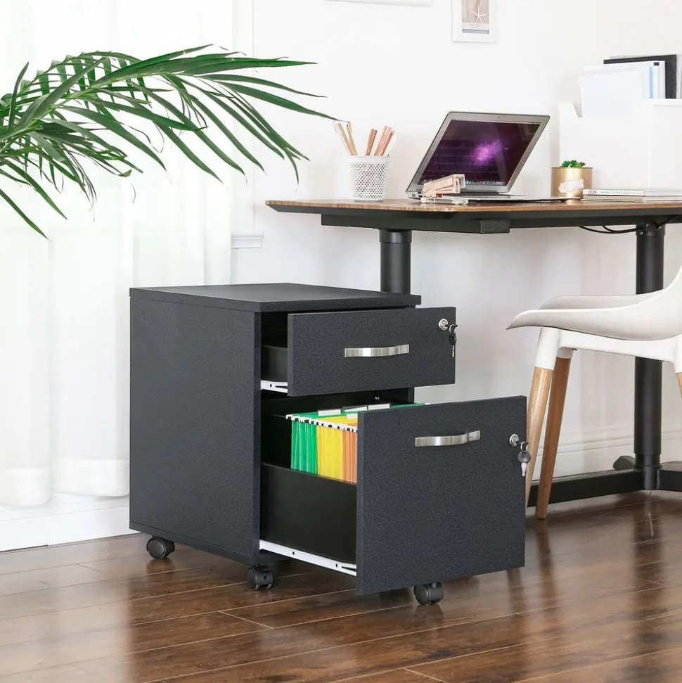 [Facile à monter] Les instructions sont claires, il suffit de les suivre pour assembler le cadre, puis insérer les tiroirs en tissu. Les tiroirs du caisson peuvent être placés librement à l’endroit souhaité ![Robuste et durable] Fabriqué en acier robuste et en panneau d’aggloméré, ce meuble de rangement à 2 tiroirs supporte jusqu’à 91 kg. Il offre un rangement solide pour vos fournitures de bureau[Espace organisé, accès rapide] Les 2 tiroirs en tissu peuvent accueillir des dossiers de format A4, l’espace au-dessus des tiroirs permet de retrouver rapidement les dossiers grâce aux étiquettes. 2 compartiments ouverts aident à ranger vos objets[Espace supérieur généreux] Grâce à son plateau large, ce support peut servir à poser votre imprimante tout en laissant de la place pour d’autres fournitures de bureau. Découvrez comme il est pratique d’avoir tout à portée de main[Mobile, verrouillable, stable] Quatre roulettes pivotantes à 360°, dont deux avec frein, vous permettent de le stabiliser où vous voulez. Les pieds réglables gardent ce caisson stable même sur un sol légèrement irrégulier