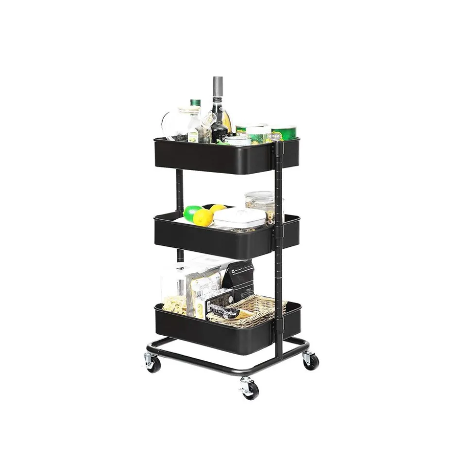 Pour une utilisation à long terme : Grâce à son cadre en fer traité par poudrage électrostatique et ses raccords en plastique de première qualité, cette étagère mobile est durable.