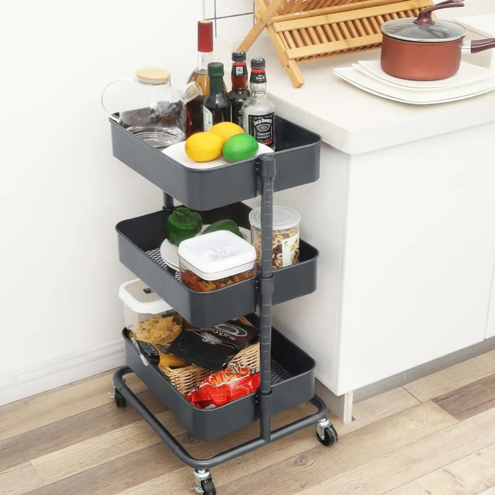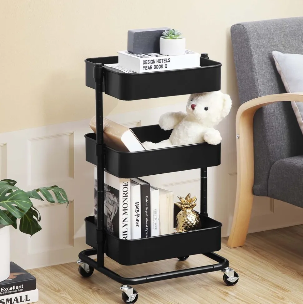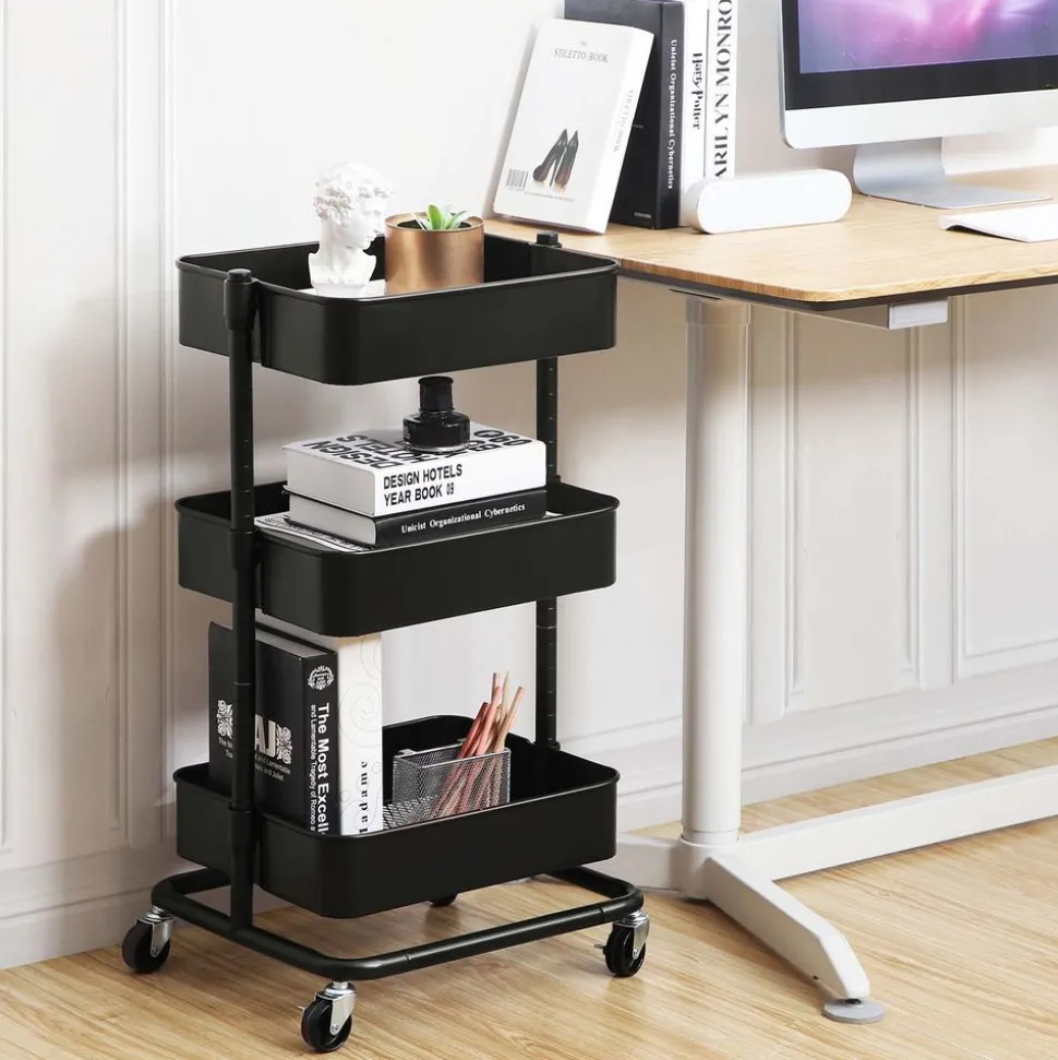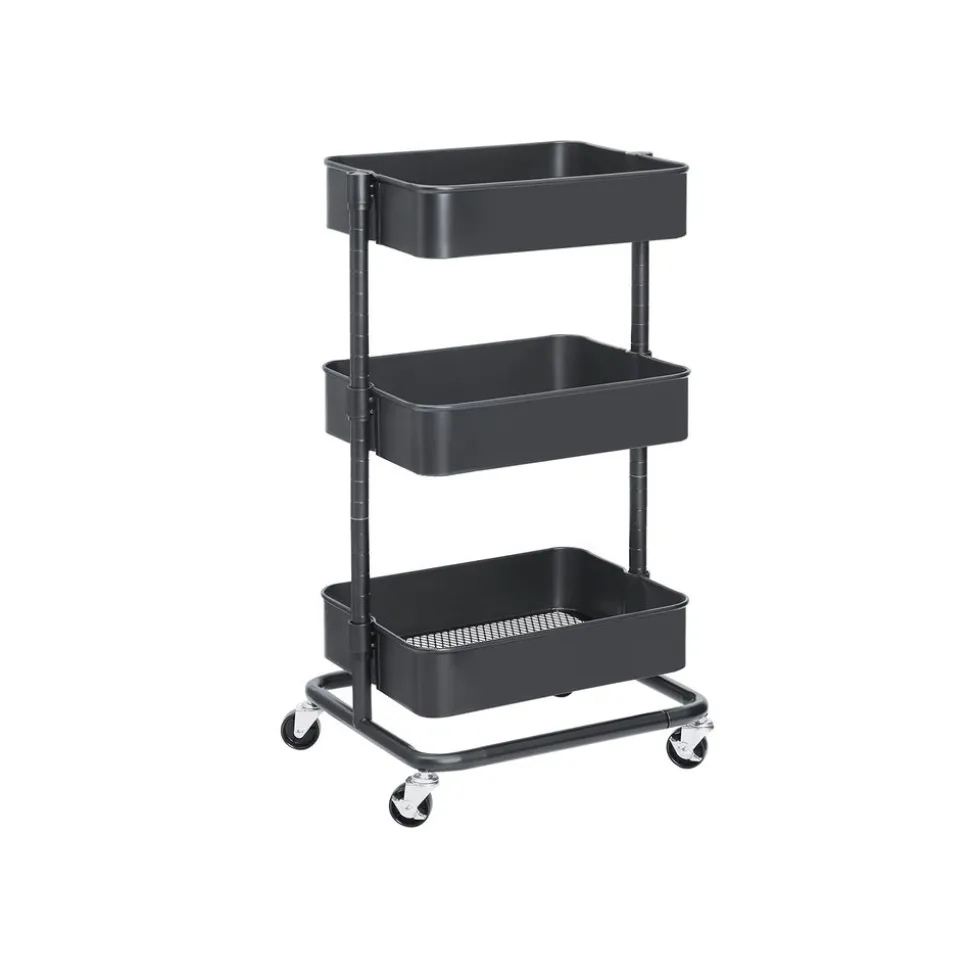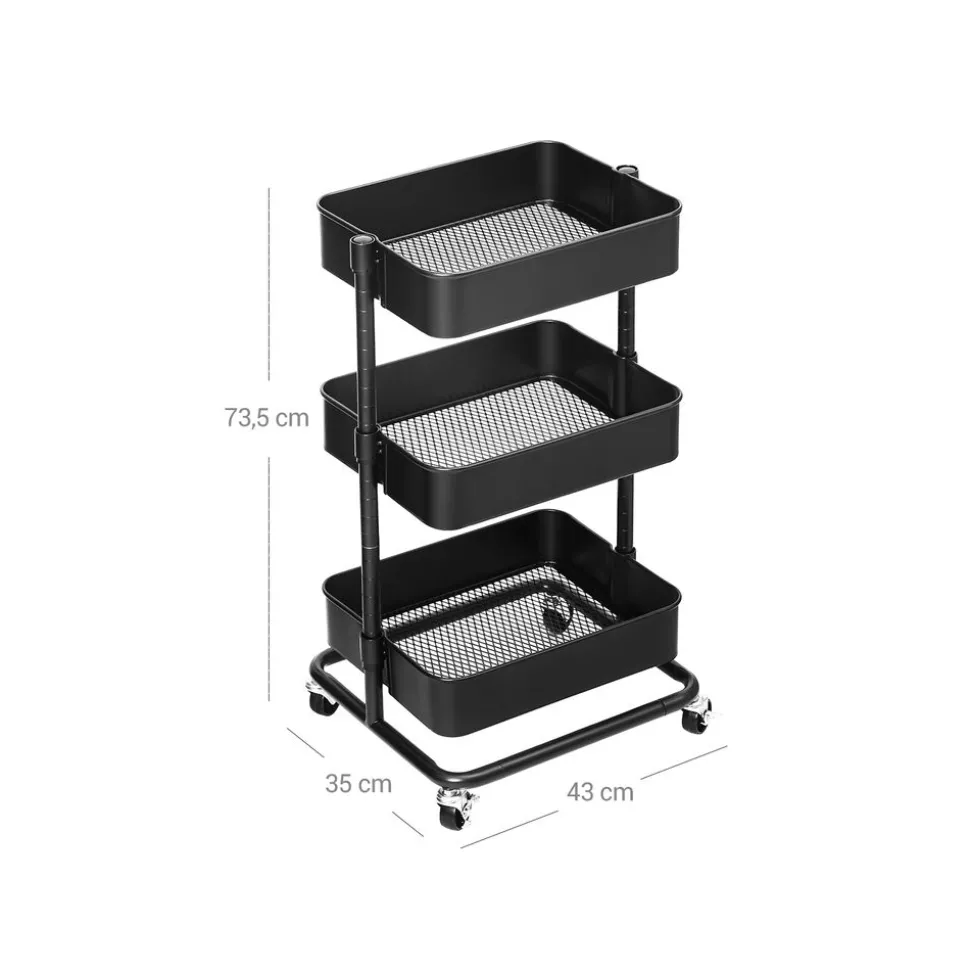 Pour plus d’espace de rangement : Avec 3 tablettes réglables en hauteur de 37,5 x 29,5 x 8,5 cm, 38 x 30 x 8,5 cm et 38,5 x 30,5 x 8,5 cm, ce chariot vous offre de la place pour des objets que vous utilisez couramment, des fournitures, et d’autres choses.