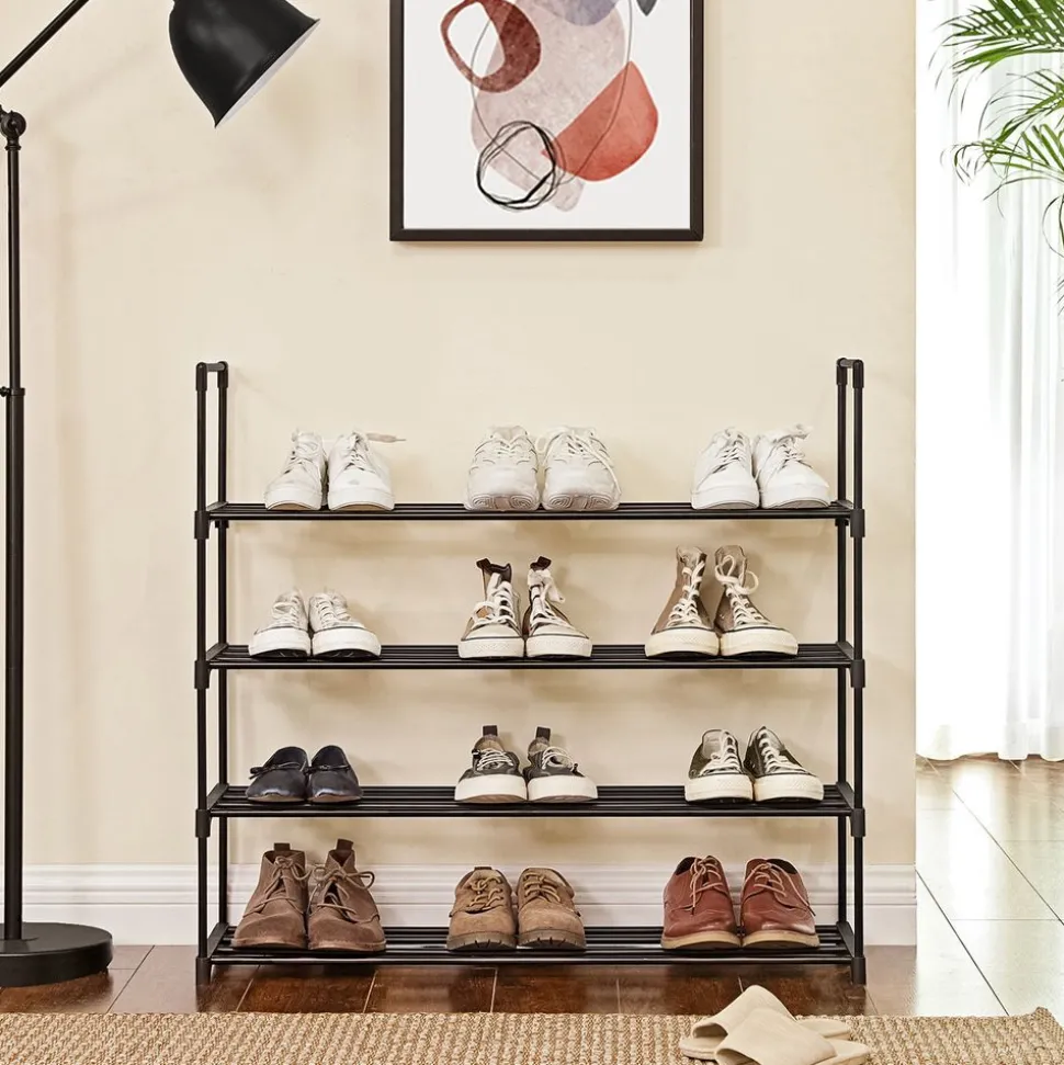 ULTRA FONCTIONNEL: 12 crochets en 2 rangs, 2 étagères en treillis pour des chaussures, banc ultra résistant (épaisseur de la tablette: 30 mm) qui fait un endroit pour s’asseoir pendant que vous mettez vos chaussures