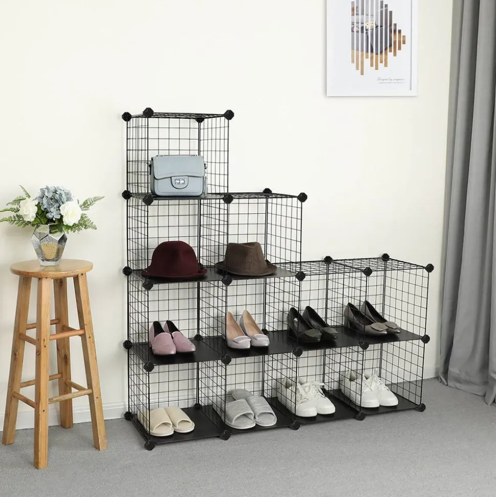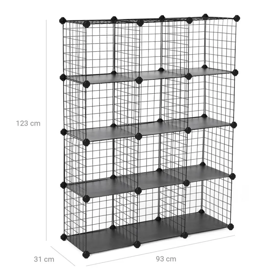 Bonne capacité de charge et stabilité – L’étagère est constituée de panneaux en treillis métalliques fixés par des raccords en ABS ; le treillis métallique solide garantit une utilisation robuste et durable. La charge maximale de chaque panneau est de 10 kg.