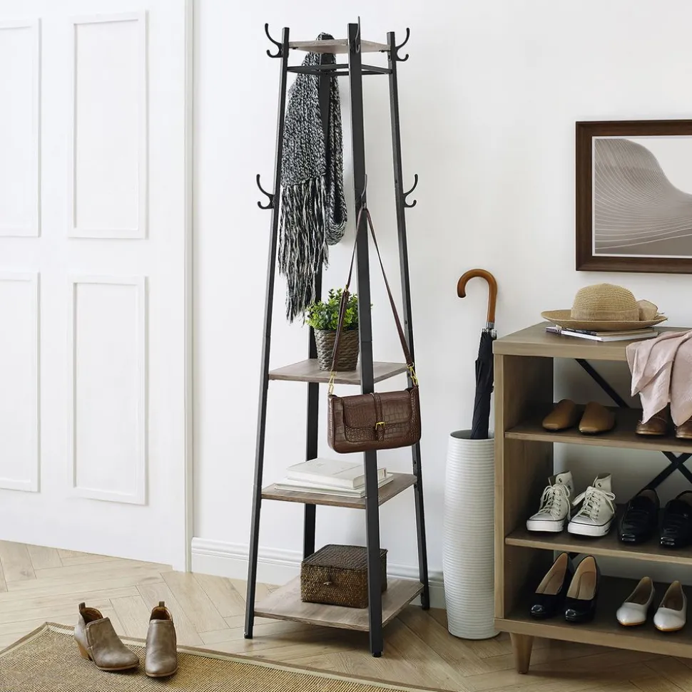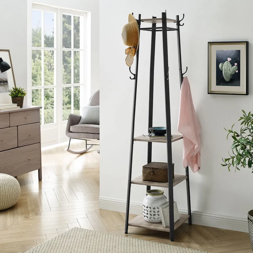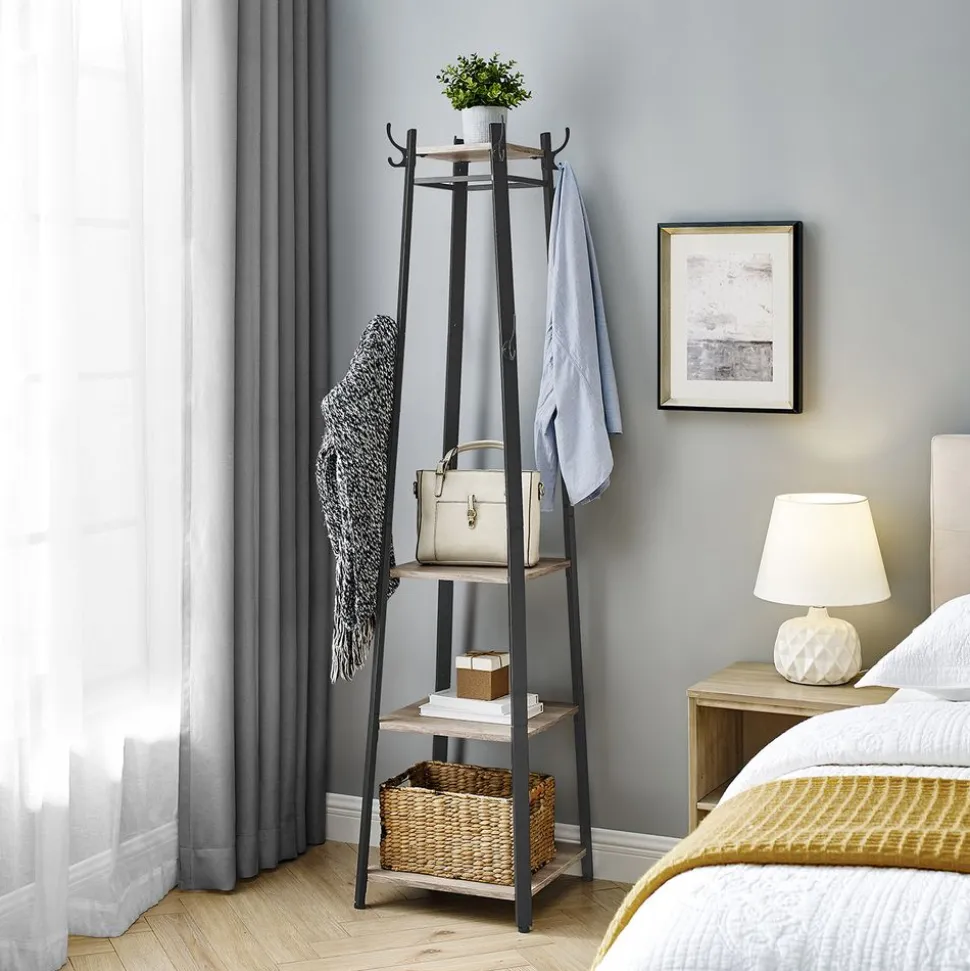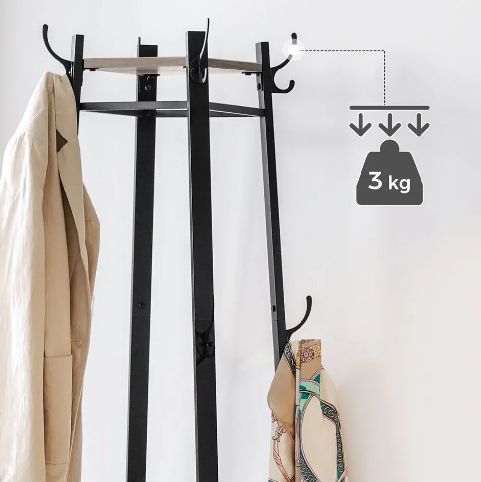 【INSTALLATION FACILE】Pas besoin de perceuses ni de vis. Ce portemanteau ajustable peut être facilement inséré entre le sol et le plafond, grâce à son mécanisme à ressort interne. Idéal pour les locataires ou ceux qui déménagent fréquemment