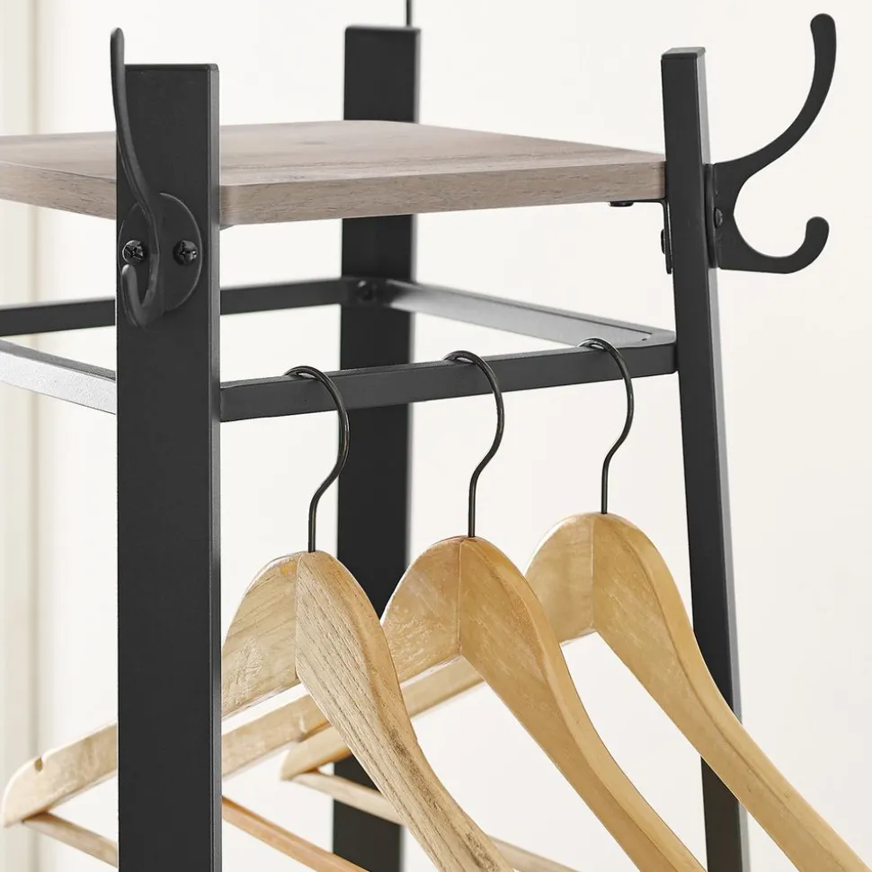 【TRINGLE POUR CINTRES PRATIQUE】La tringle pour cintres incluse permet de ranger facilement des vêtements sur les sections supérieures du portant. Cette fonctionnalité améliore l’accessibilité et permet à vos vêtements d’être toujours à portée de main