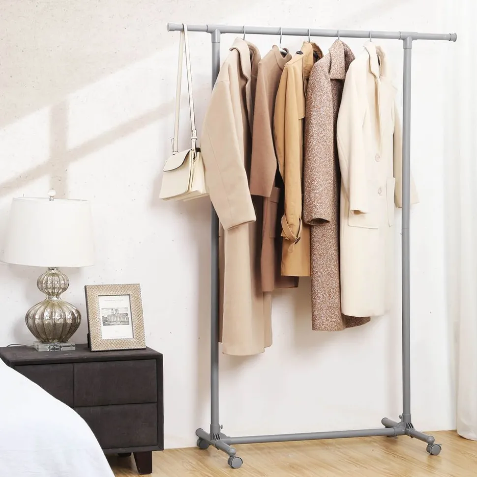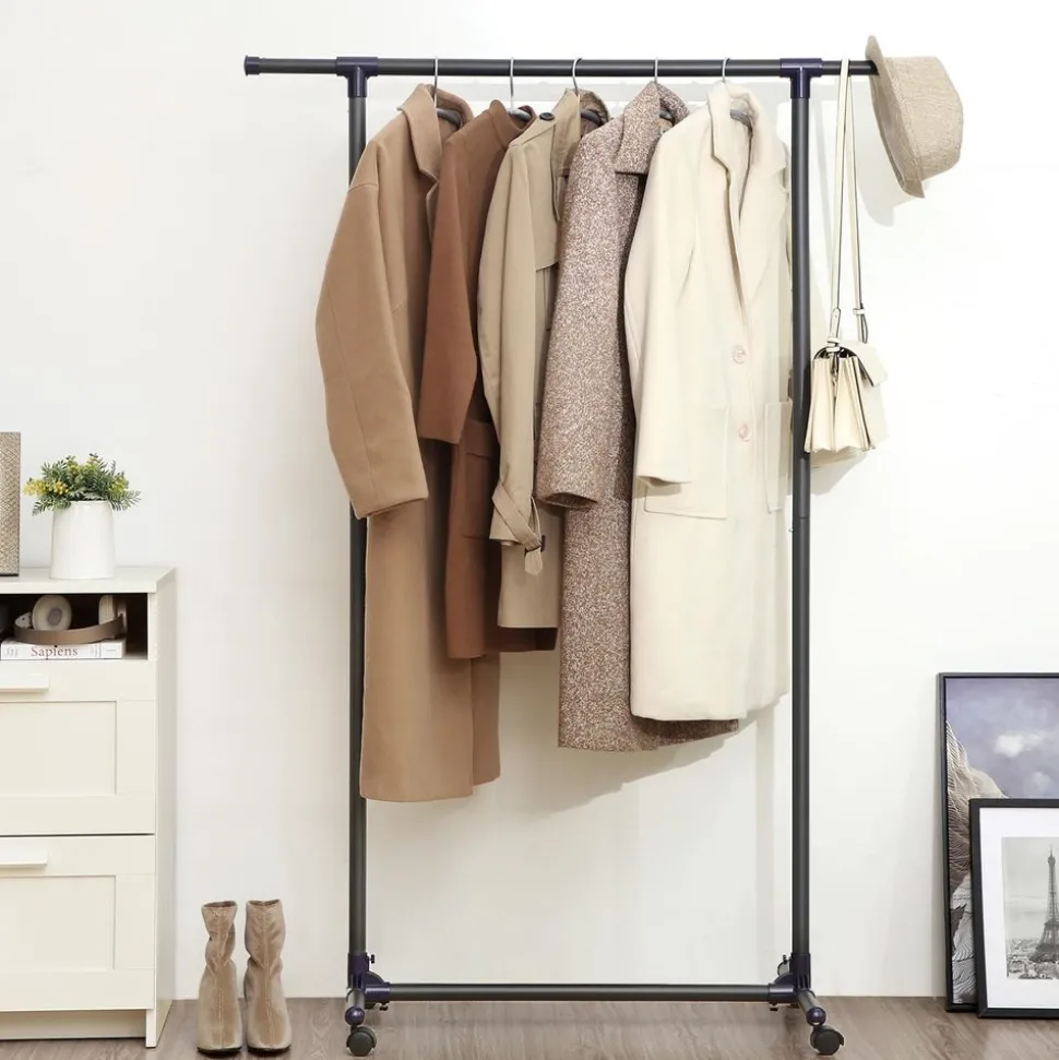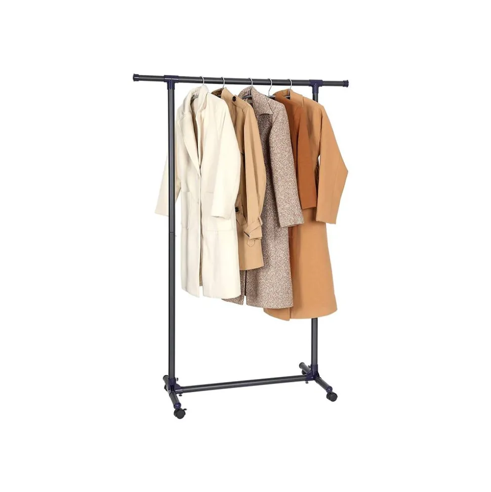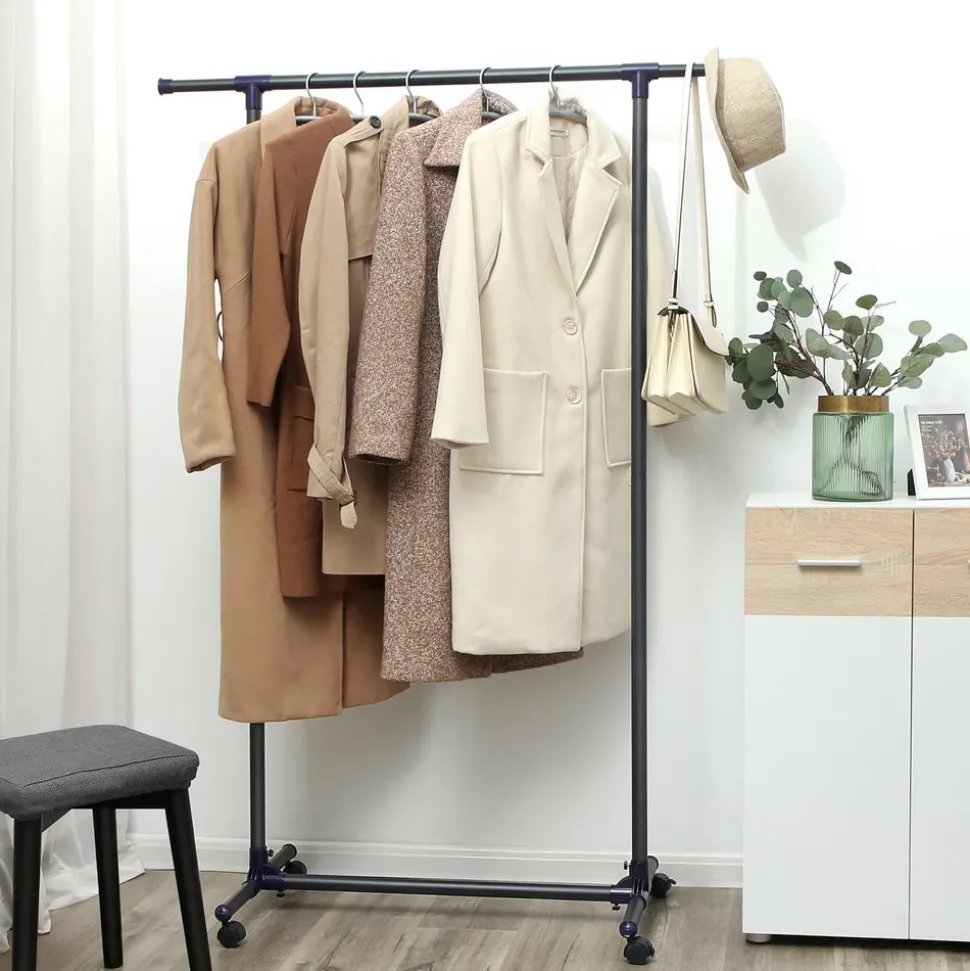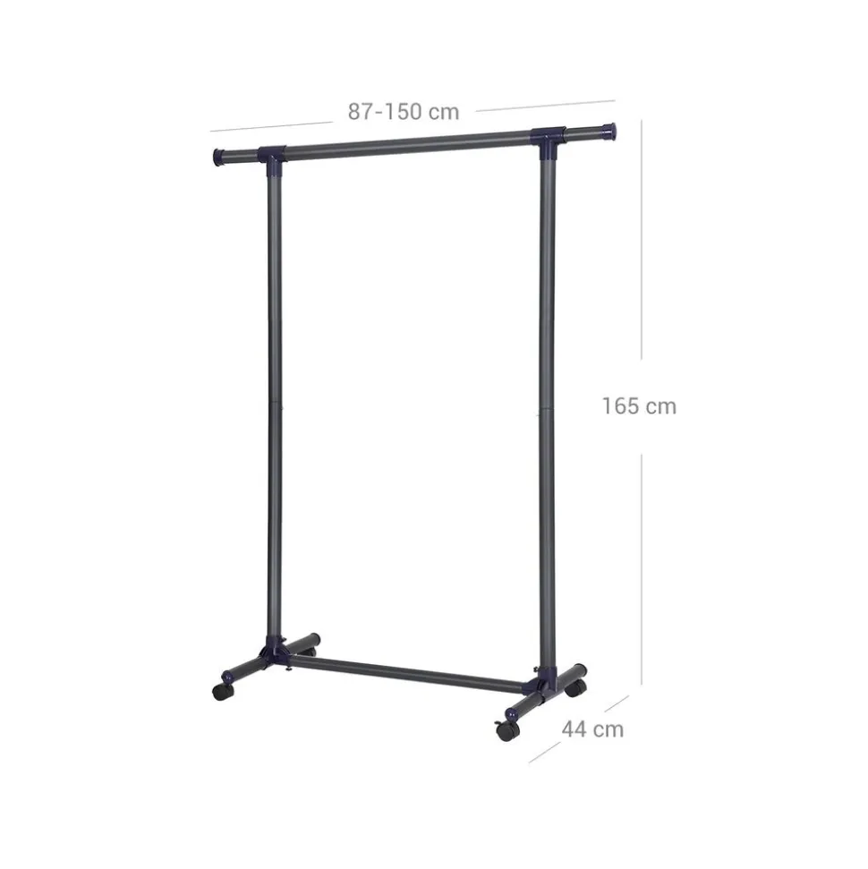 Pas de panique avec peu de place :Votre armoire est décordé ? Ou vous n’avez pas d’armoire ? Munissez-vous de porte-vêtements chez vous ! Vous pouvez tout y suspendre, des robes aux manteaux. De plus, la barre supérieure est extensible jusqu’à 150 cm pour plus d’espace.