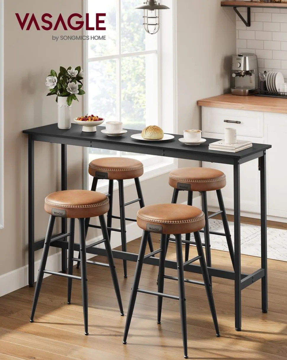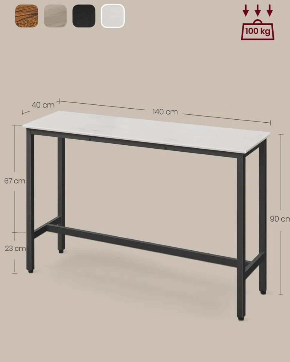[Tout nouveau] Améliorez votre salle à manger avec cette table de bar simple mais impressionnante. Dotée de pieds métalliques de 25 x 25 mm d’épaisseur et d’une élégante finition blanc rustique, vous pourrez bientôt manger à une hauteur plus confortable[Compacte et spacieuse] Cette table de bar fine n’a que 40 cm de profondeur, ce qui la rend idéale pour les petites salles à manger tout en offrant un grand espace pour les assiettes, les tasses et les couverts[En haut mais pas que] Un beau dessus de table, c’est indispensable. Mais c’est encore mieux d’avoir aussi des pieds de table qui impressionnent, et tout ça avec stabilité ! Ici, c’est le cas grâce à des barres métalliques de 20 x 40 mm d’épaisseur[Rapide et simple] Cette table de bar se compose de 6 pièces et peut être assemblée en 10 minutes sans aucun d’effort. Cette table sera prête avant même que quelqu’un ait pris l’initiative de mettre le couvert ![Idée déco] Créez le coin petit-déjeuner de vos rêves et embellissez dès maintenant votre intérieur avec cette table design de la série ALINRU !