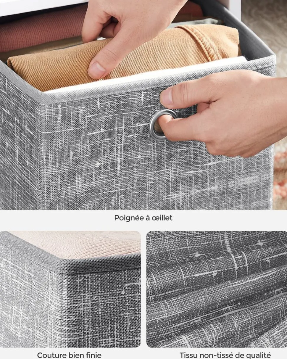 SKU: SKURFB033G01 Categories: Chambre, Rangements, Rangements À Vêtements, Rangements Par Pièces, Rangements Par Types Tags: Beige Sable, Bleu Brumeux, Gris Chiné, Noir, Rose Bonbon, SONGMICS, Taupe Brand: SONGMICS