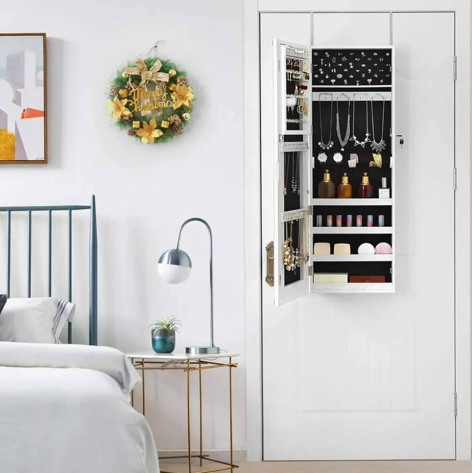 Attendez ! Il manque encore quelque chose. Choisissez une paire de boucles d’oreilles et un collier pour compléter votre tenue. Heureusement, vous n’avez pas besoin de les chercher partout, car ils sont tous rangés en ordre dans cette armoire à bijoux avec miroir.Les amateurs de bijoux attendent les avantages suivants: