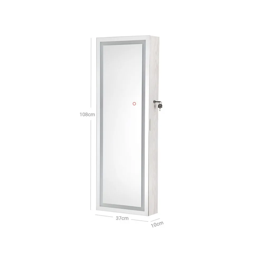 - Le matin vous portez votre nouvelle robe rouge assortie à vos talons et admirez votre tenue gracieuse dans le long miroir de cette commode à bijoux. La luminosité de la bande lumineuse pour être changée par l’interrupteur tactile pour que vous puissiez vérifier soigneusement votre maquillage.