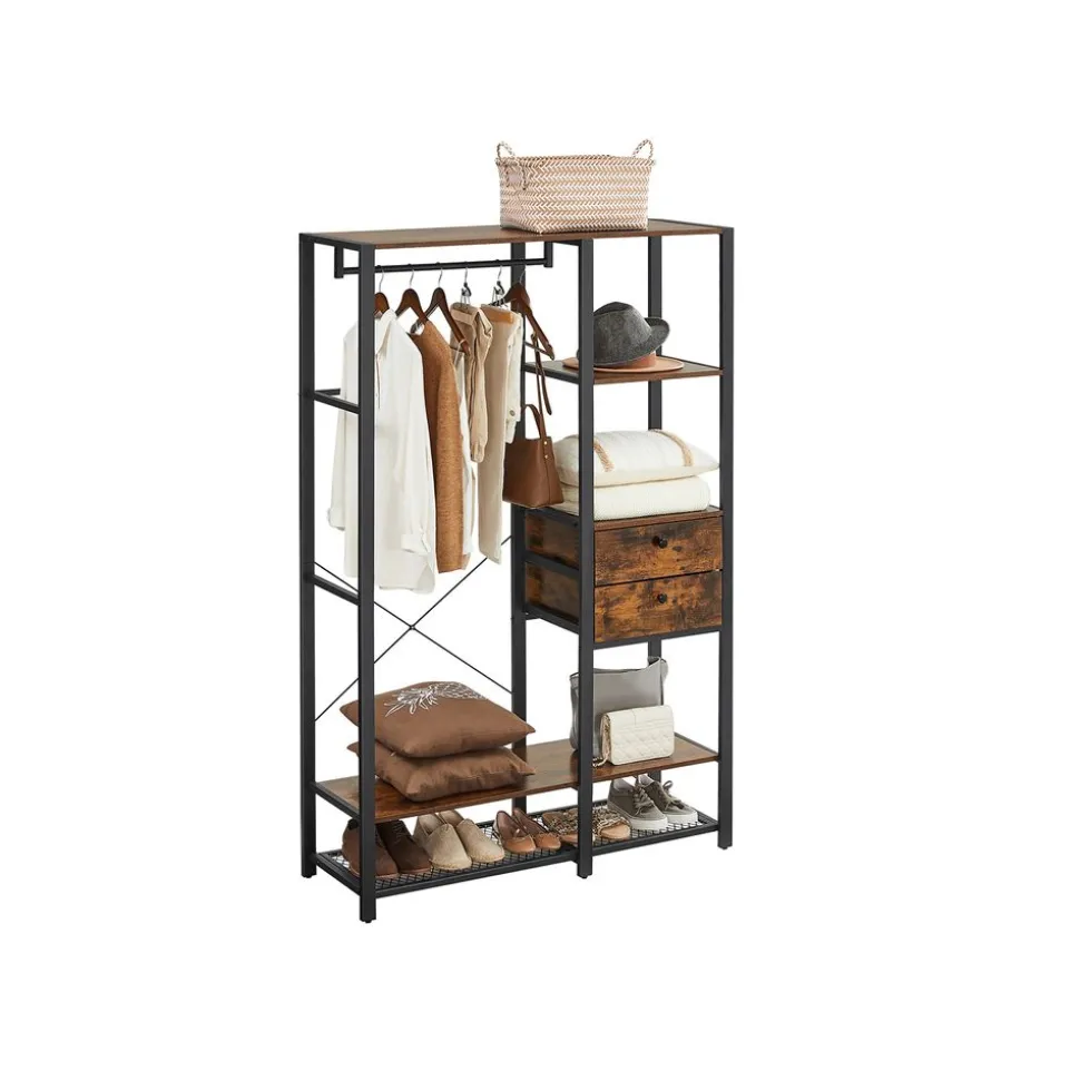 Son look ? Industriel ! Cette penderie a enfilé son plus beau costume marron enveloppé d’un manteau noir très chic. Le petit plus côté accessoire ? Des grilles super tendance ! En voilà un look industriel qui a la classe, comme vous !