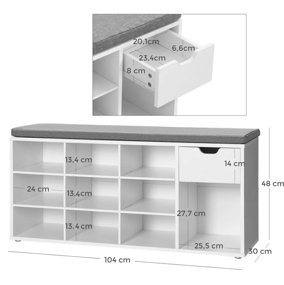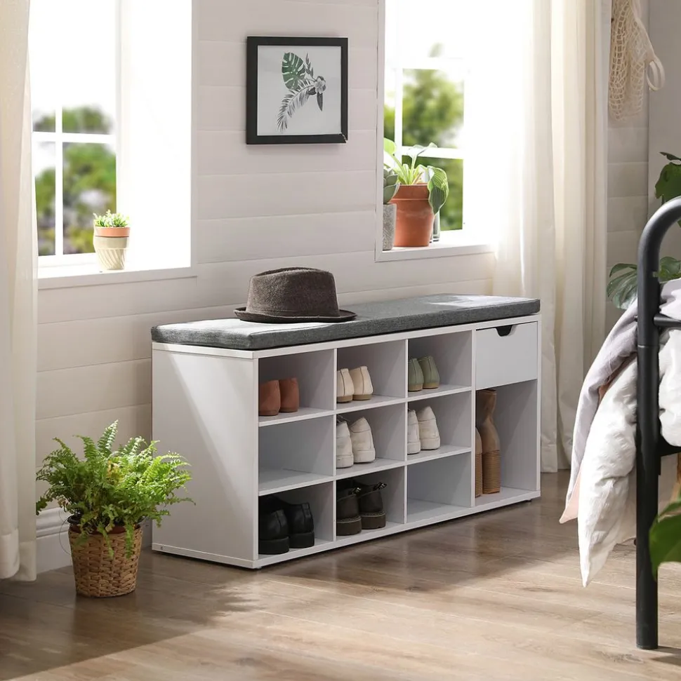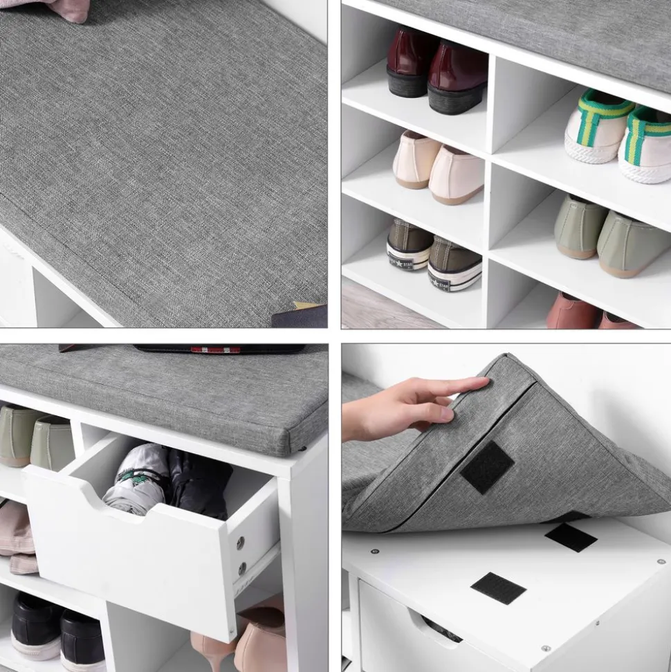 Plutôt que de lacer vos chaussures accroupies sur le sol dans l’inconfort, pourquoi pas vous asseoir sur ce banc à chaussures ? Fabriqué en panneau d’aggloméré durable de classe E1 et bien rembourré, c’est un siège supplémentaire qui vous soutient dans les moments difficiles.Profitez des petits espaces