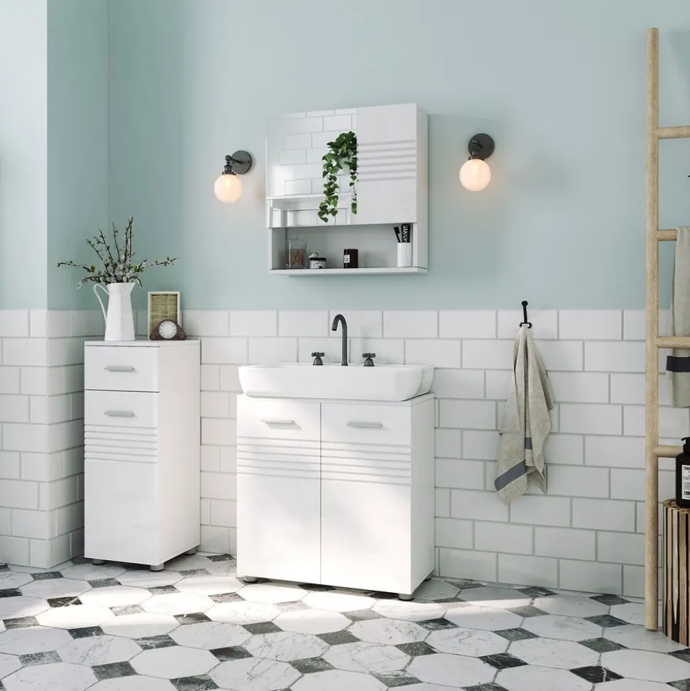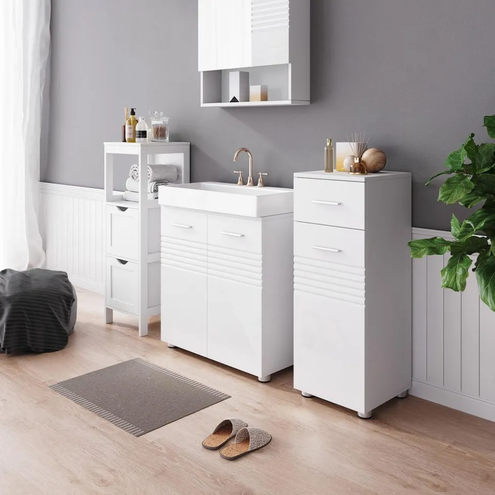 Étagères ajustables – Ajustez facilement la hauteur des étagères pour les s’adapter à toutes les tailles de contenants. La hauteur maximale pour les cosmétiques est de 24,7 cm. Les étagères sont assez solides pour supporter aussi vos flacons lourds de shampooings