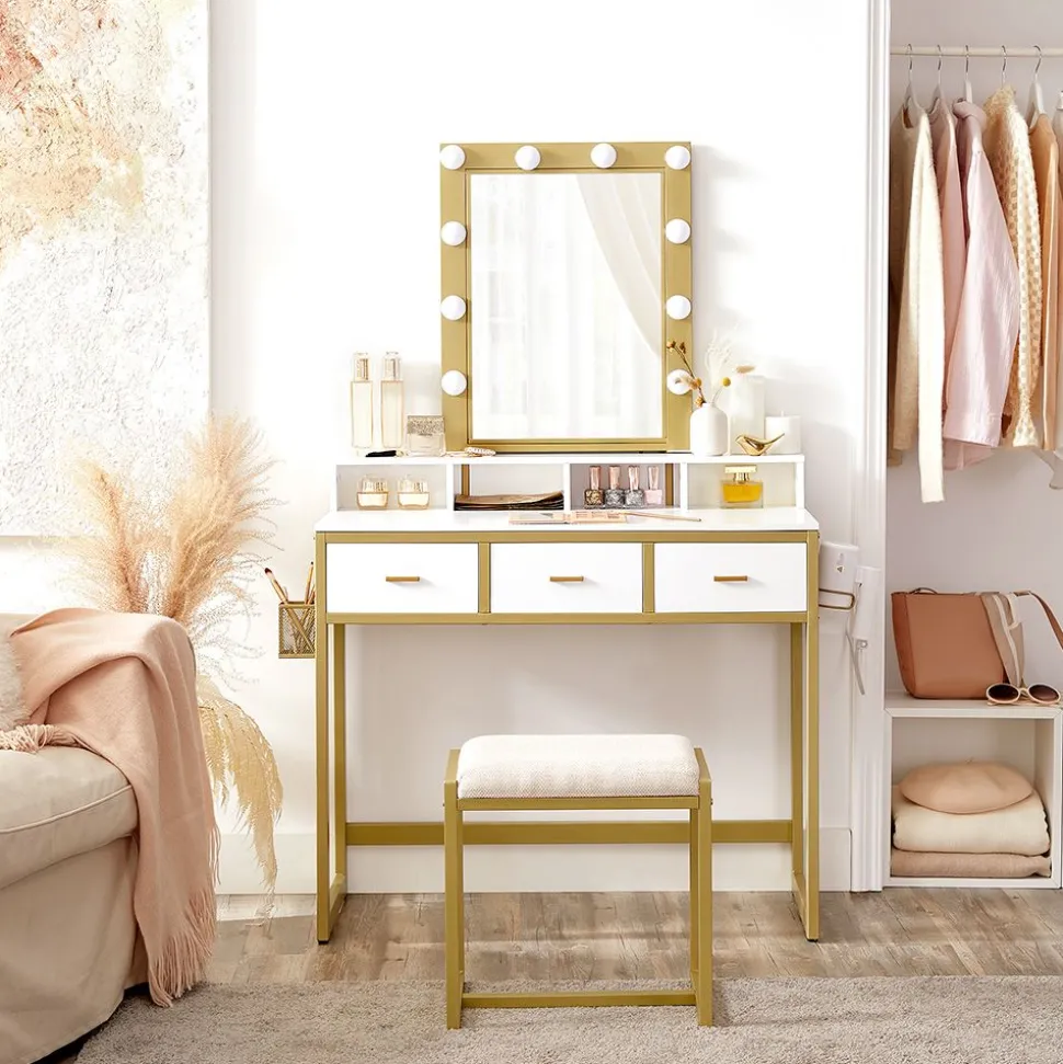 Et celles qui ont besoin de clarté : Une fois dehors, votre maquillage à l’air totalement différent ? C’est que votre pièce manque de lumière ! Le miroir de cette coiffeuse est équipé de 10 LED avec une intensité réglable en continu ! Problème réglé !