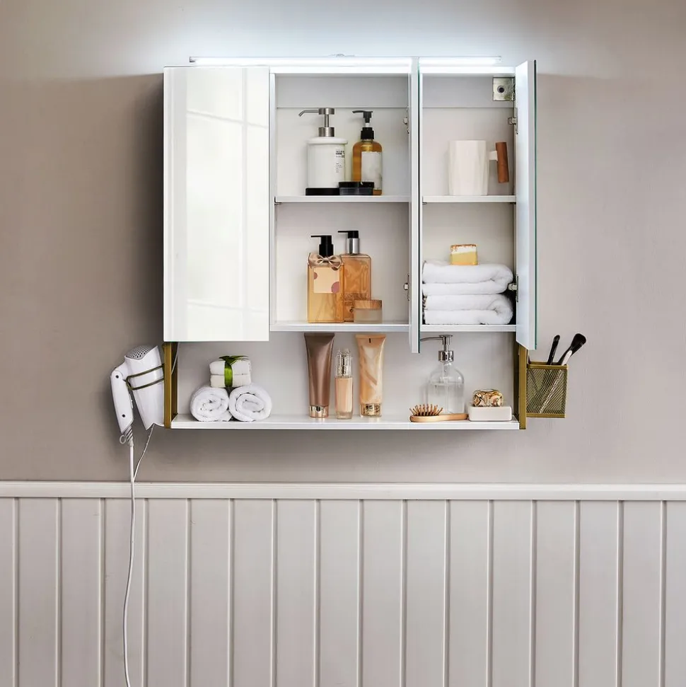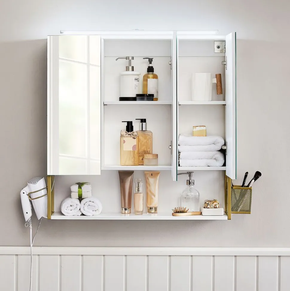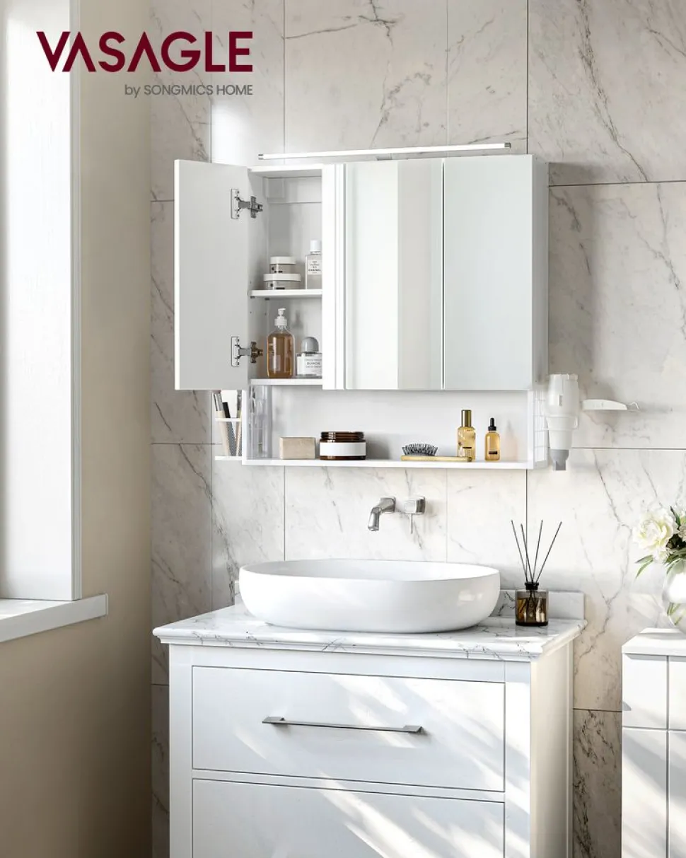 Partie supérieure transparente en verre acrylique – un aspect particulièrement chic et élégant grâce à une combinaison de verre acrylique et de plastique ABS ; ainsi vous voyez clairement votre collection de cosmétiques par le haut.