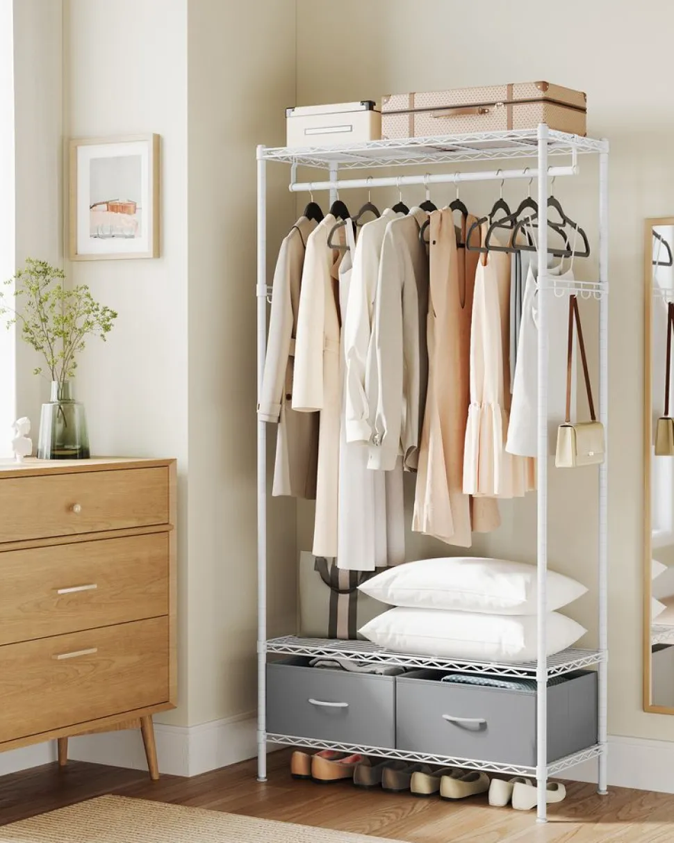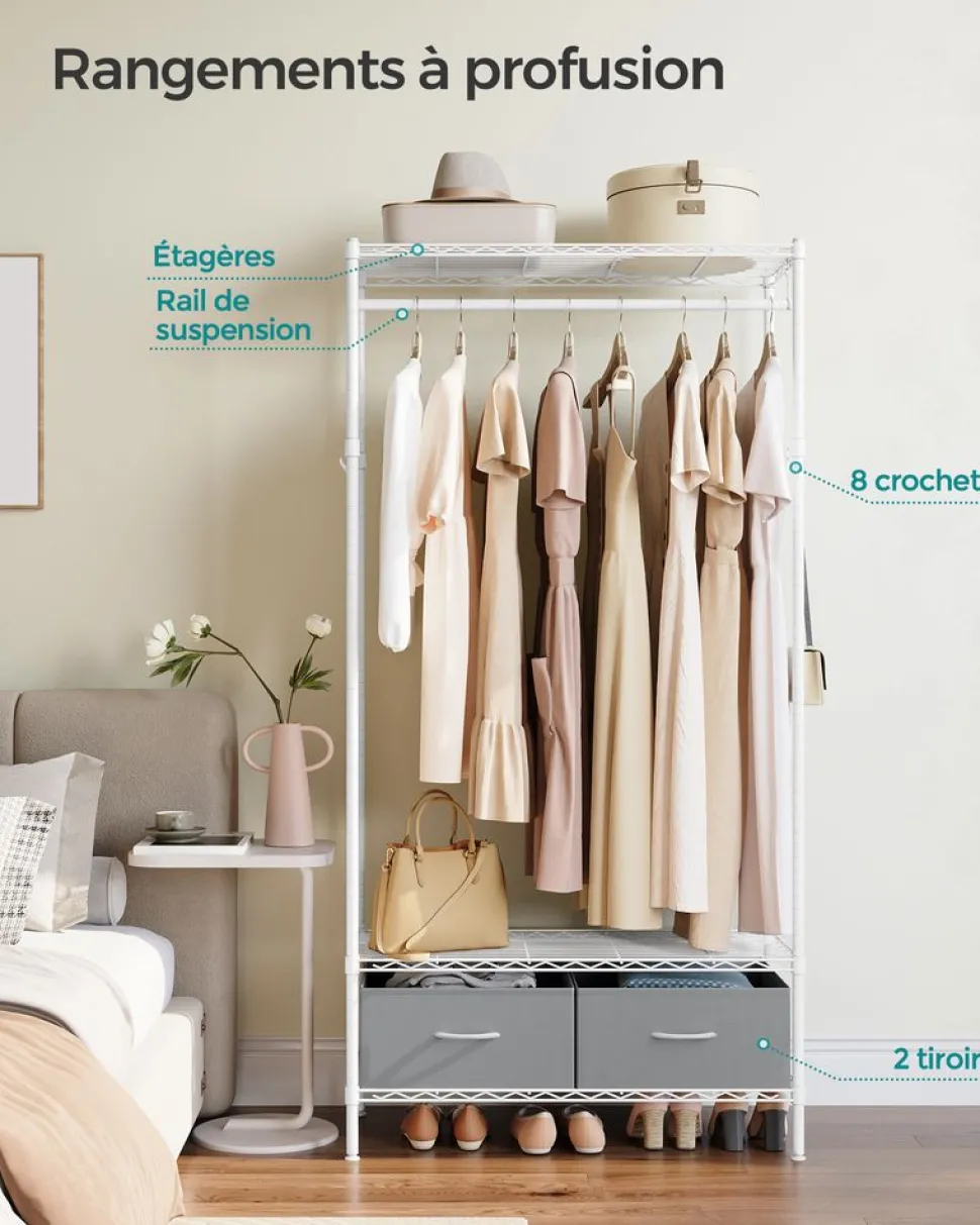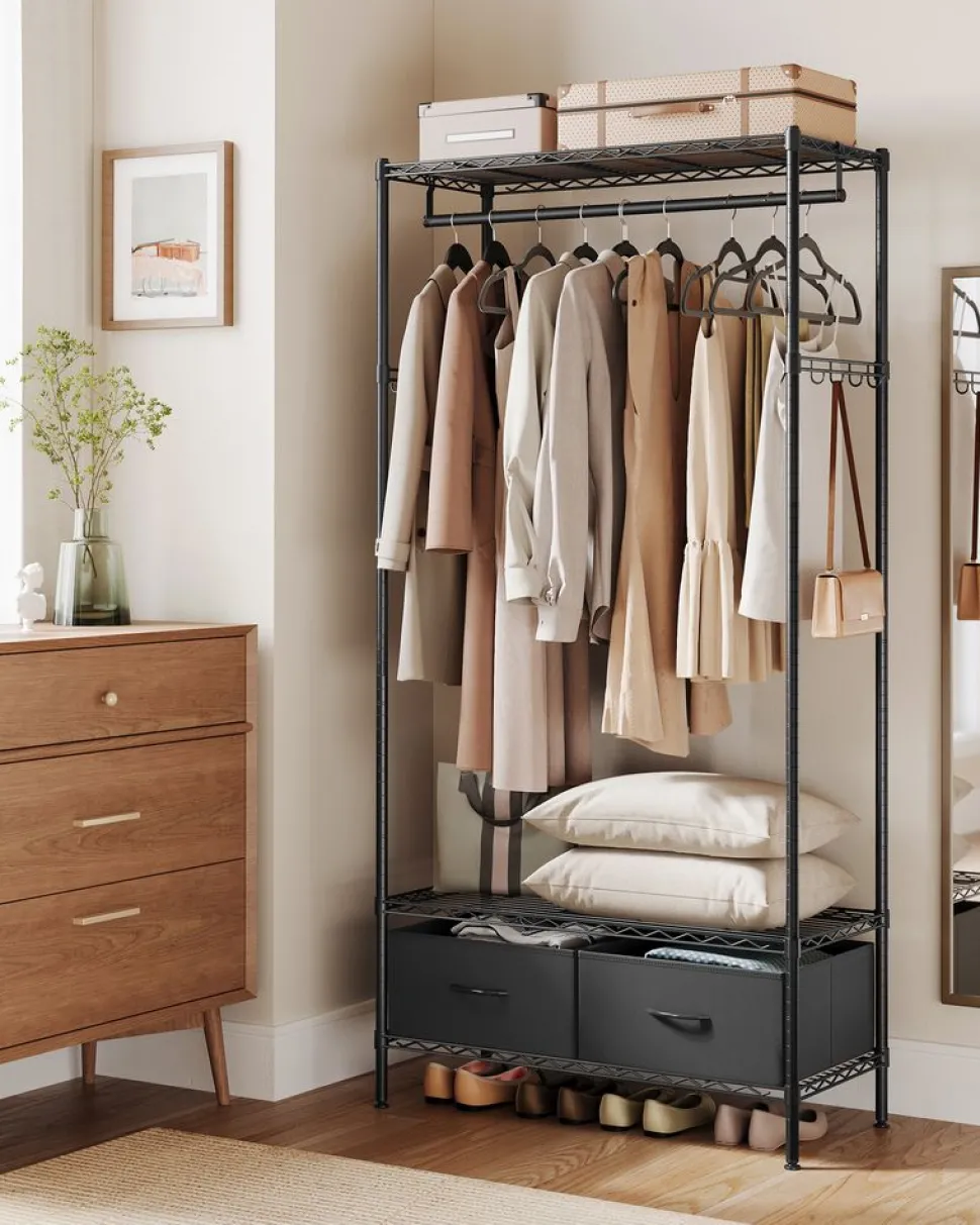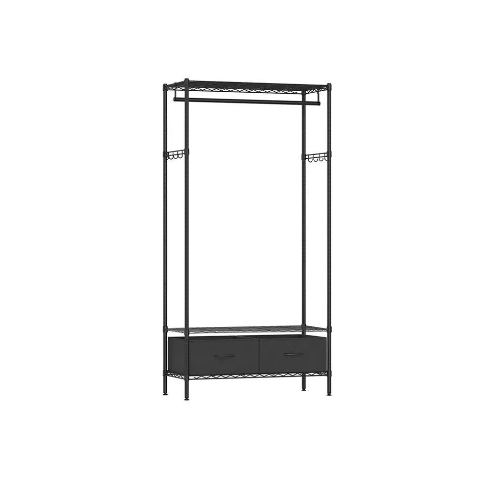 Online SONGMICS Portant à vêtements ouvert avec étagères grillagées avec 2 tiroirs et tringle à vêtements noir d’encre