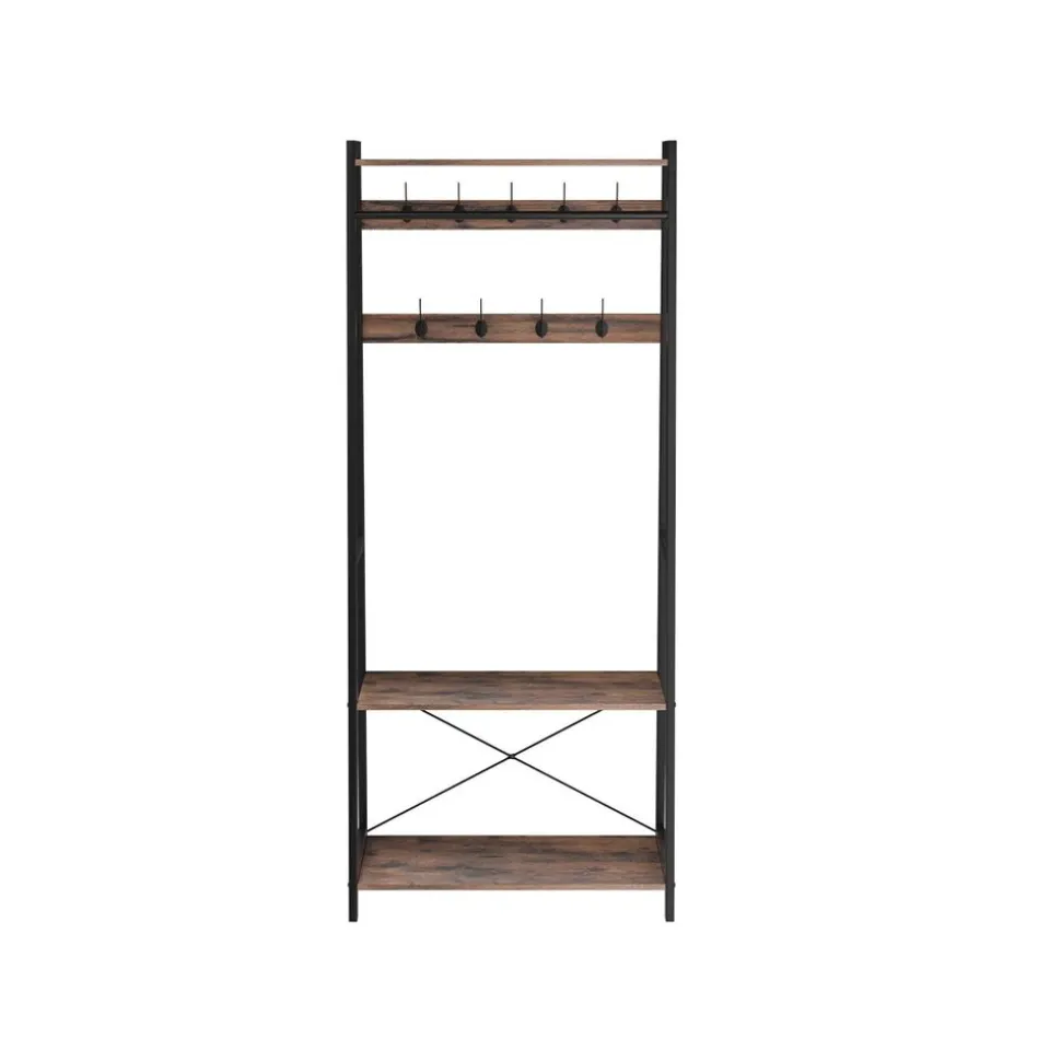 UN DUO IMBATTABLE: La combinaison d’un cadre métallique robuste et de solides panneaux d’aggloméré confère une grande stabilité au portemanteau, même lorsque ce dernier est entièrement chargé de lourdes vestes d’hiver. Le dispositif anti-basculement assurent une grande sécurité