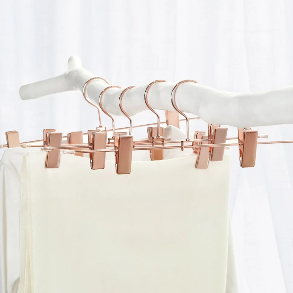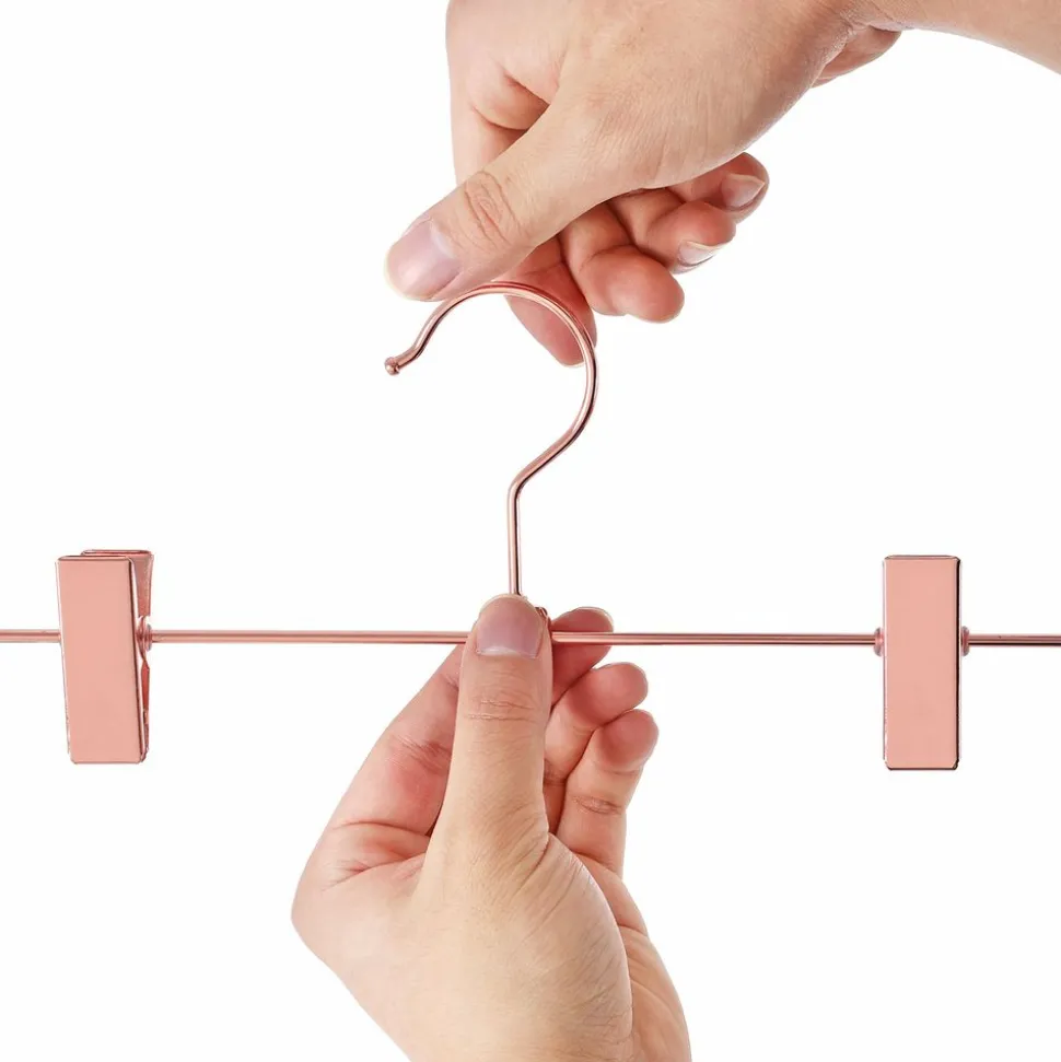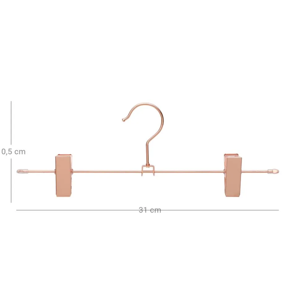 Quelle que soit la brillance de votre chapeau: pour que votre garde-robe brille un peu plus tard, nous avons conçu cet élégant cintre en or rose. Avec une longueur de 31 cm et des clips pratiques, ils sont parfaits pour les pantalons et les jupes.