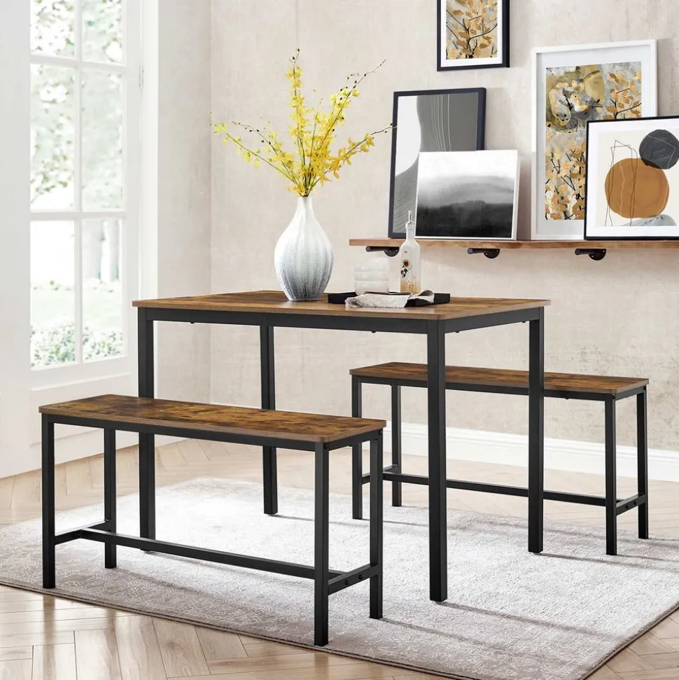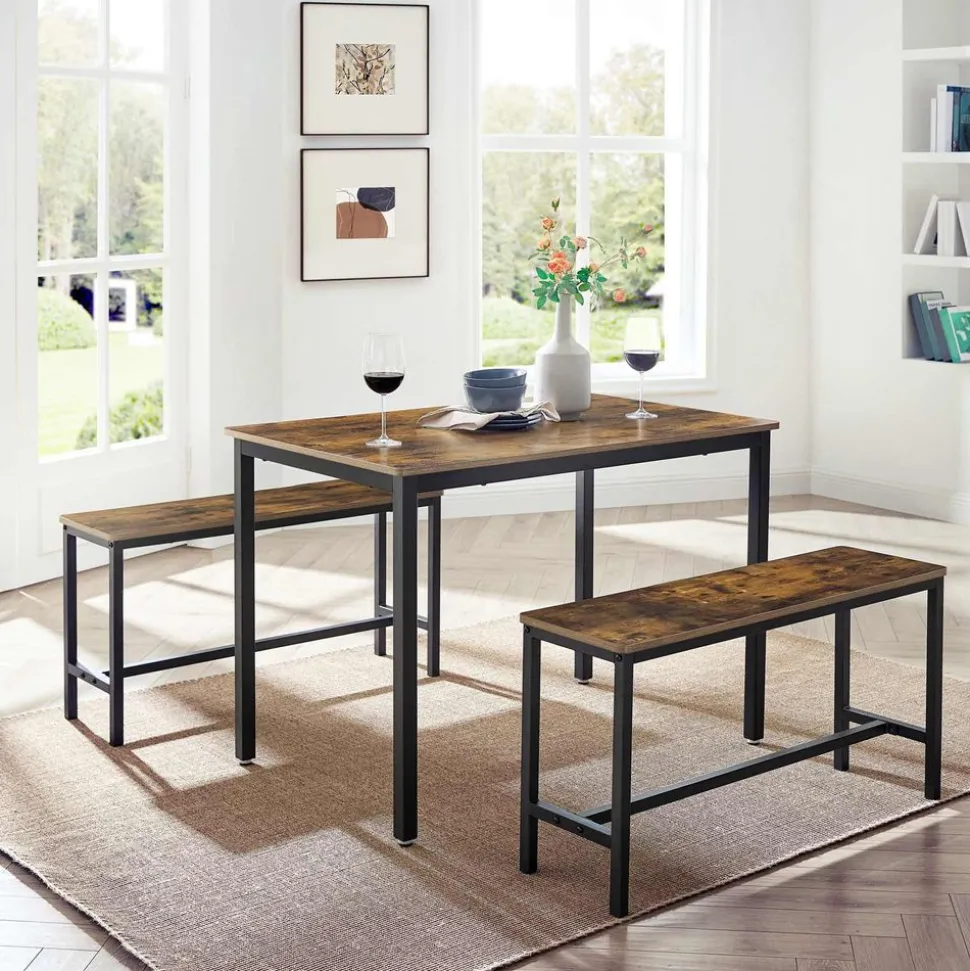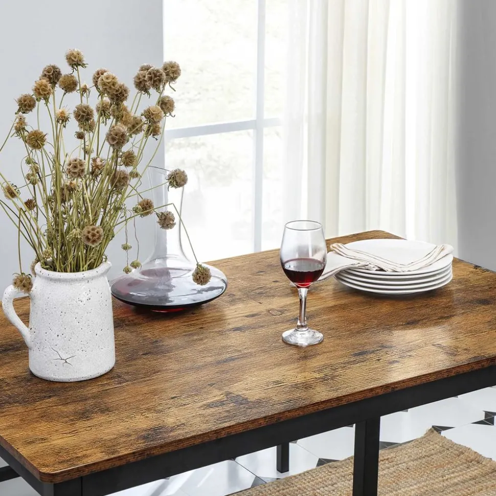 STYLE RECHERCHÉ : Les panneaux marron rustique, les barres de la table de 40 x 40 mm et les barres des bancs de 25 x 25 mm créent un style industriel tout en assurant stabilité. Parfait pour la cuisine, la salle à manger ou le salon
