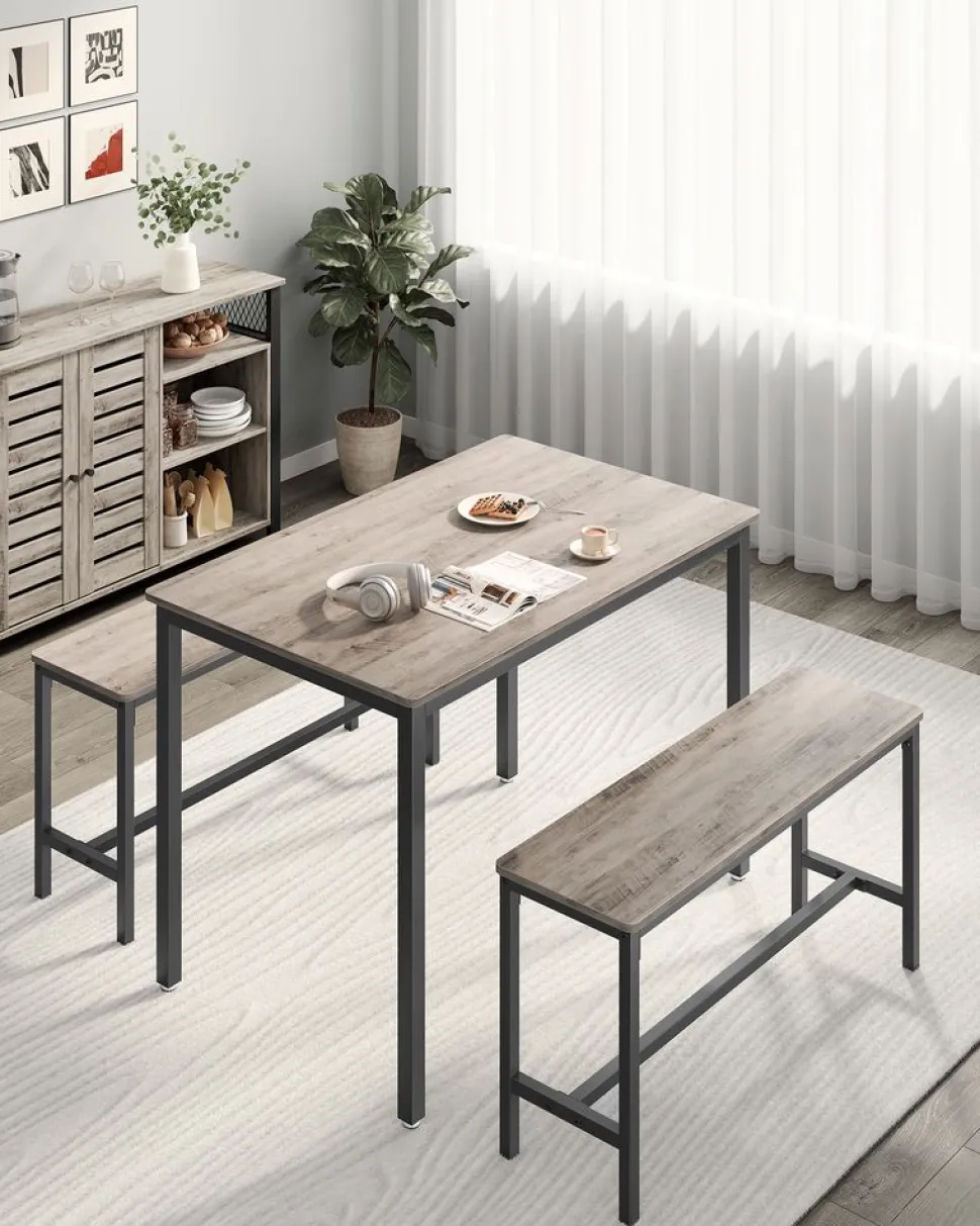 CE QUE VOUS OBTENEZ : Une table à manger et 2 bancs de la collection ALINRU. Ils sont faciles à nettoyer avec un chiffon humide. Profitez de l’ambiance festive pour bavarder, boire, manger et faire la fête !