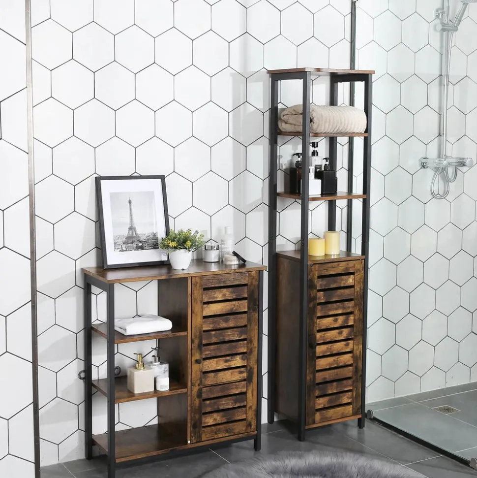 Outlet SONGMICS Meuble sous lavabo 60 x 30 x 60 cm avec cadre en acier marron rustique et noir