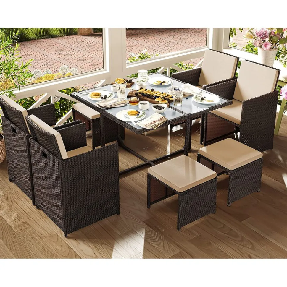 Place confortable : Les coussins de 5 cm d’épaisseur et les dossiers ergonomiques vous attendent. Détendez-vous et ressourcez-vous avec cet ensemble de meubles de terrasse !