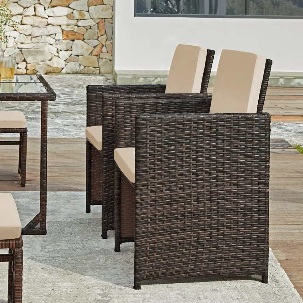 Une mini évasion : Levez la main si vous avez envie d’un coin serein et élégant ! Cet ensemble de meubles de jardin ? Celui qu’il vous faut ! Ses lignes nettes et sa surface tressée rafraîchissante lui donnent un aspect frais pour plus de zénitude