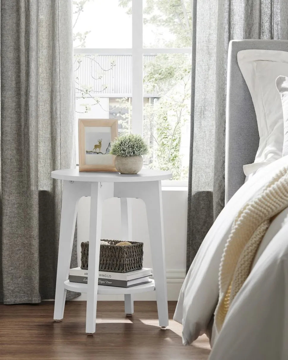 UNE PETITE VEILLEUSE DE NUIT: Placez cette table de chevet à côté de votre lit, déposez une lampe de chevet et rangez de petits objets à portée de main. De cette façon, vous ne vous levez plus jamais pour éteindre la lumière ou ne cherchez pas vos lunettes en vain dans l’obscurité