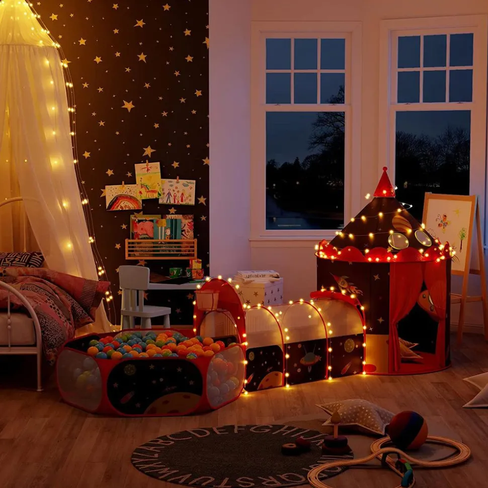 Un seul parc ? ABRACADABRA ! Elle pouvait se transformer en une tente, un tunnel et une piscine à balles à utiliser séparément. *Cette aire de jeux prenais trop de place ? TADA ! Une fois pliée, tout rentrait dans le petit sac à poignées livré avec. Un peu de saleté ? HOP-LÀ ! Un coup de chiffon et elle était toute propre !La fin de l’histoire ? Inventez-la à la maison en optant pour cette tente !
