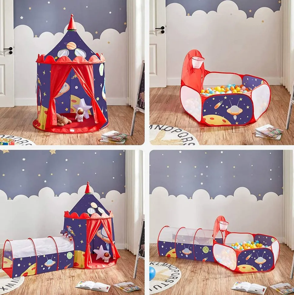 Toc, toc, toc : Que y a-t-il derrière la porte ? Une tente ! Puis un tunnel pas comme les autres à fond plat pour mieux ramper ! Et wow… une piscine à balles avec panier. 3 surprises à utiliser ensemble ou séparément pour jouer avec plusieurs copains !