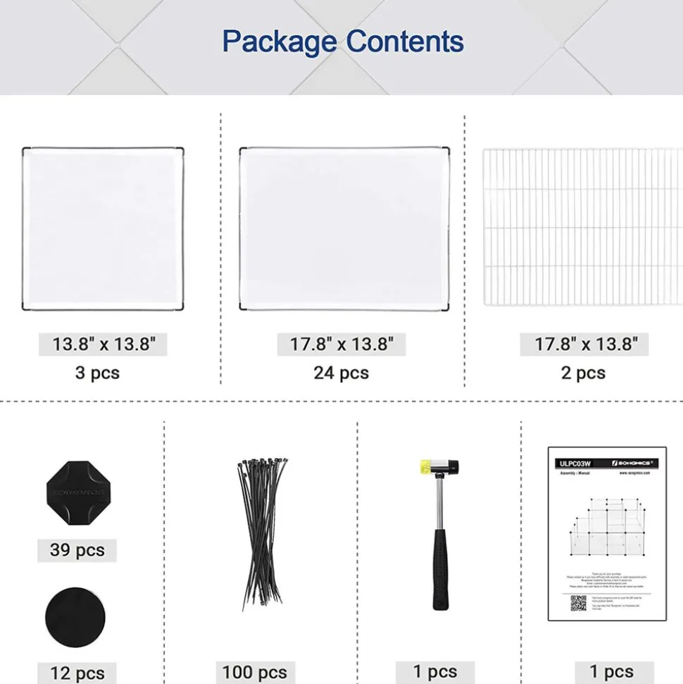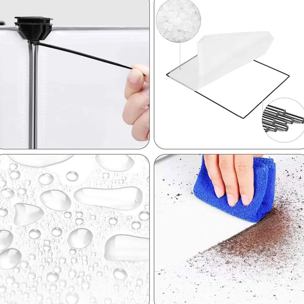 – Matériaux: Panneaux en plastique PP, cadre en métal, accessoires de connexion en plastique ABS